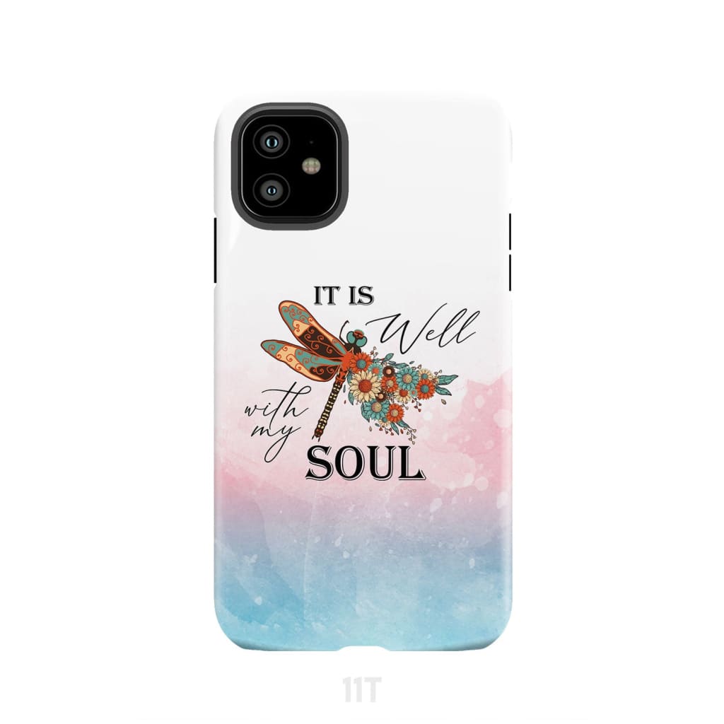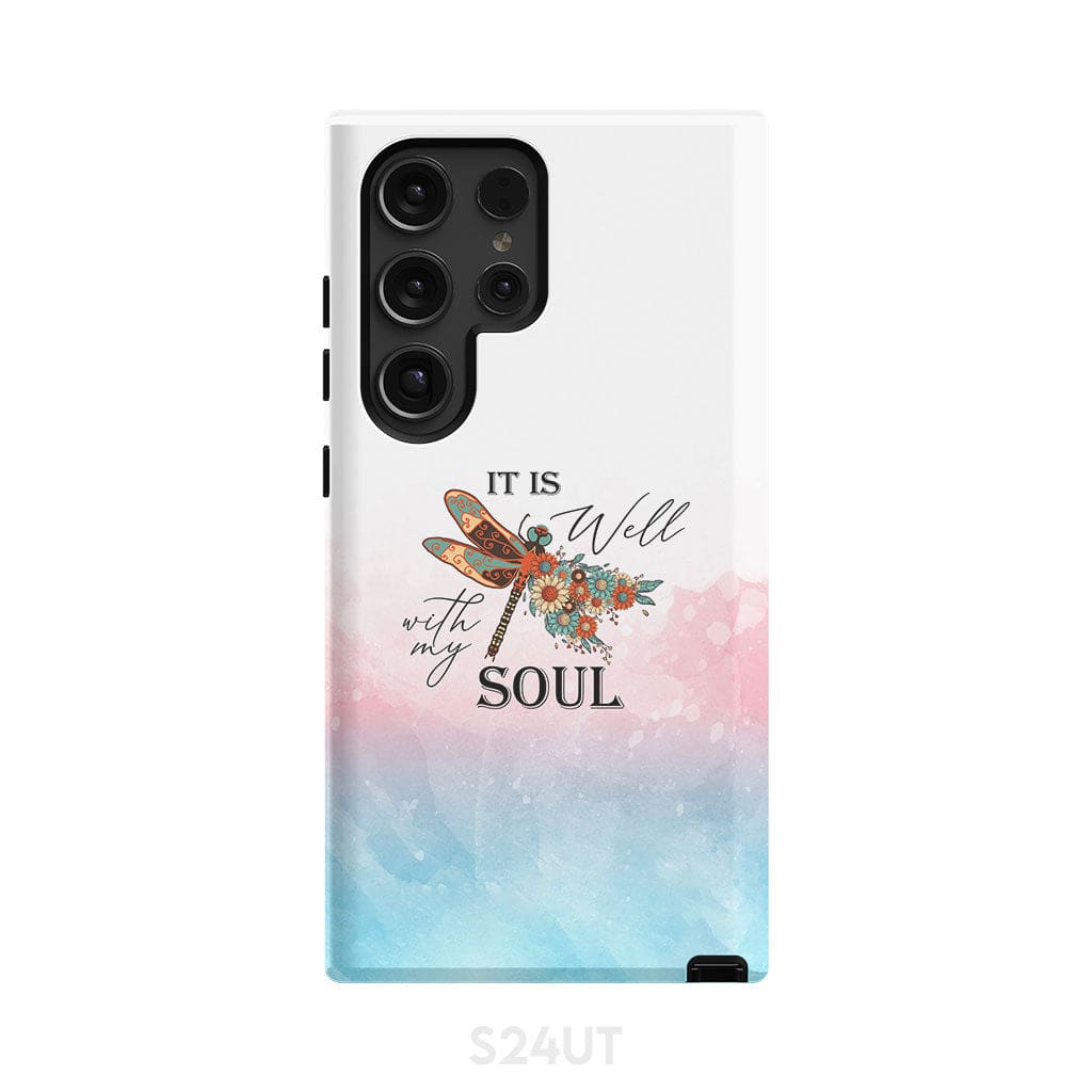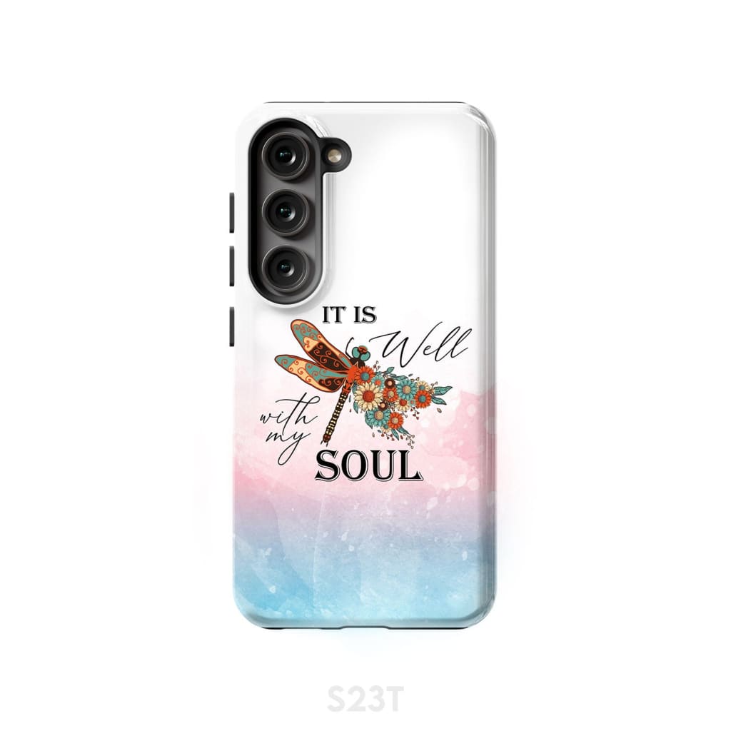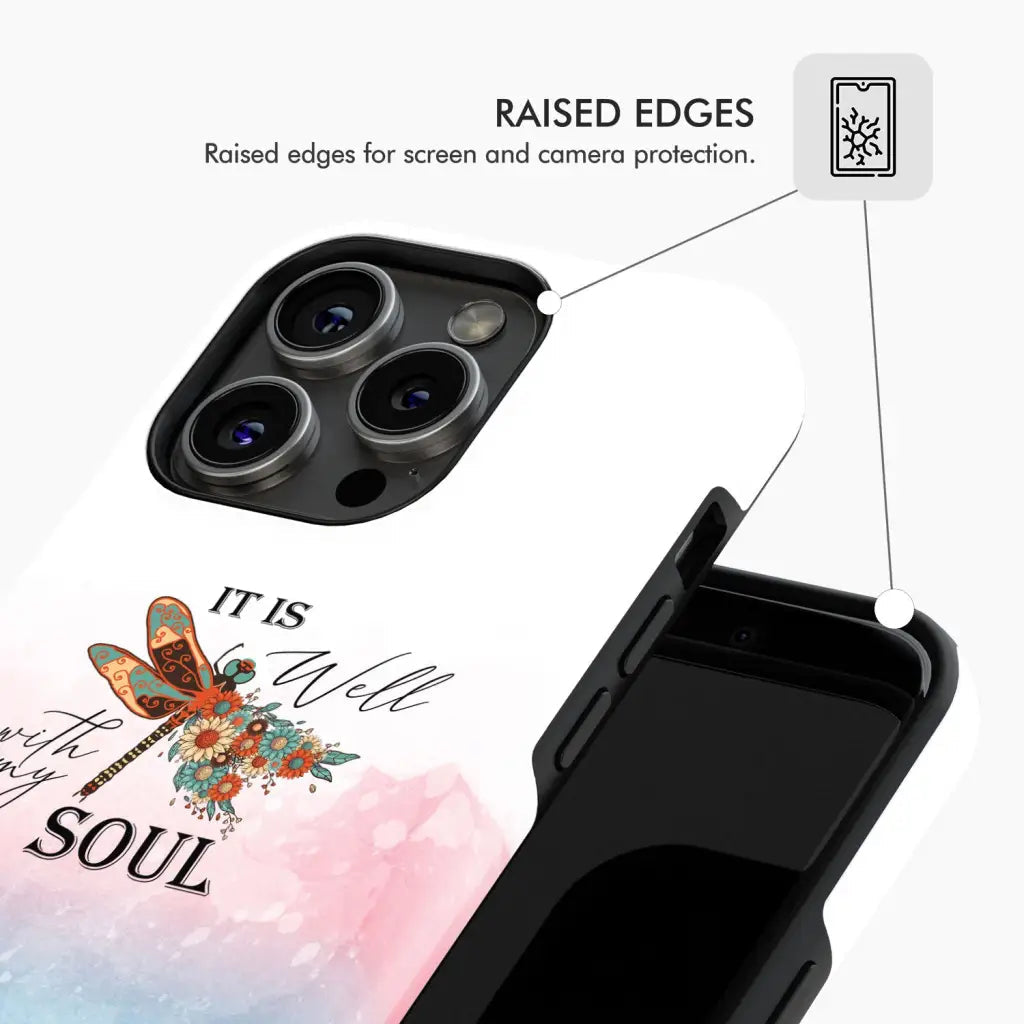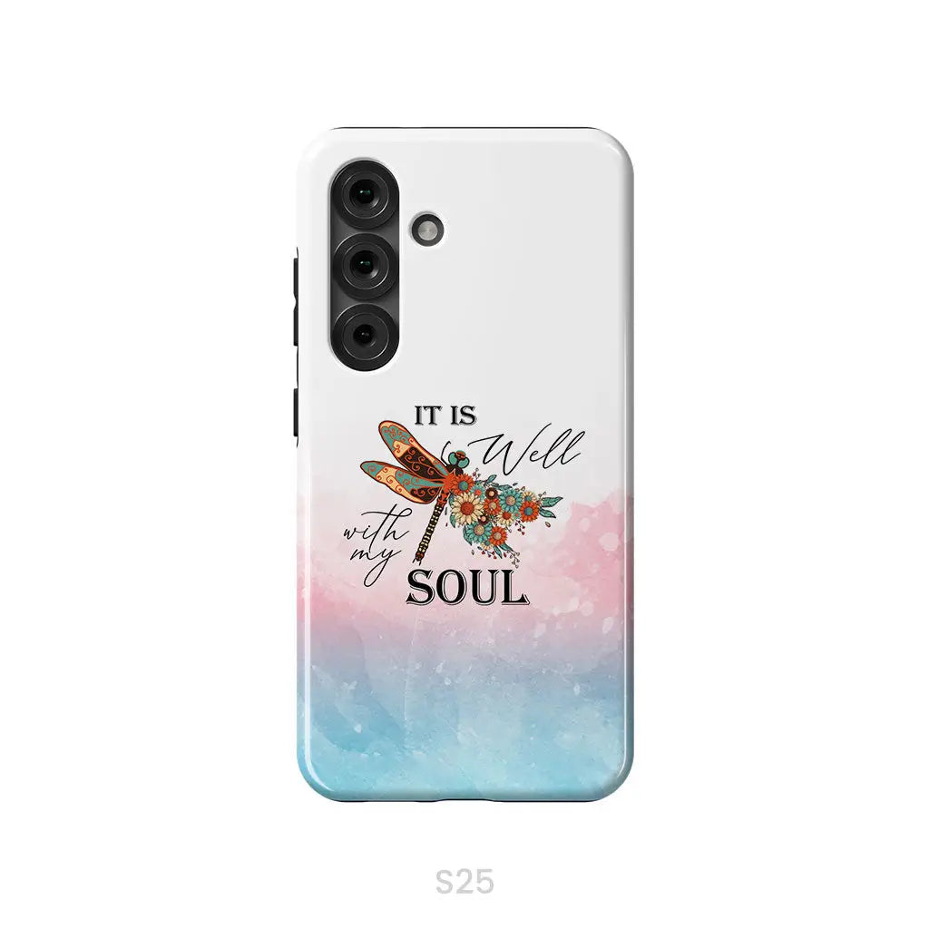 Christian Phone Case, It Is Well With My Soul, Dragonfly Flowers