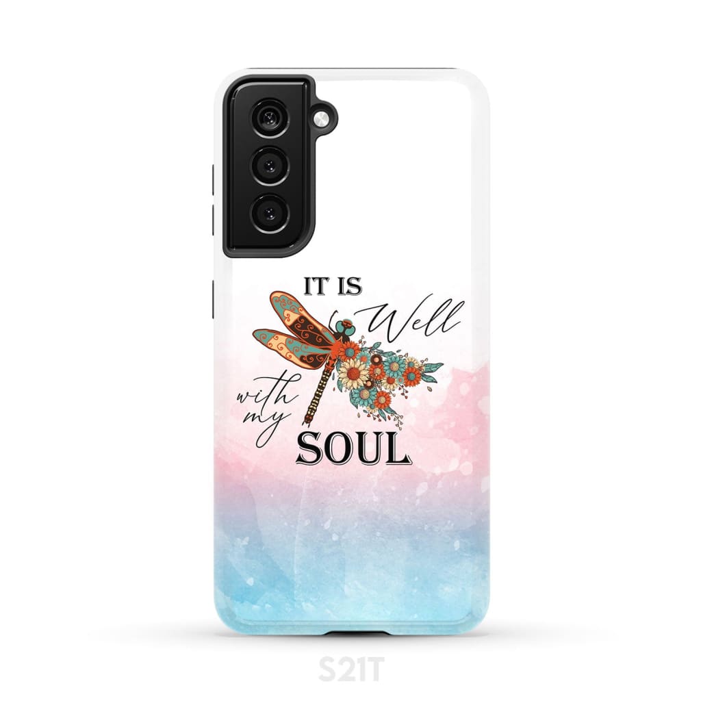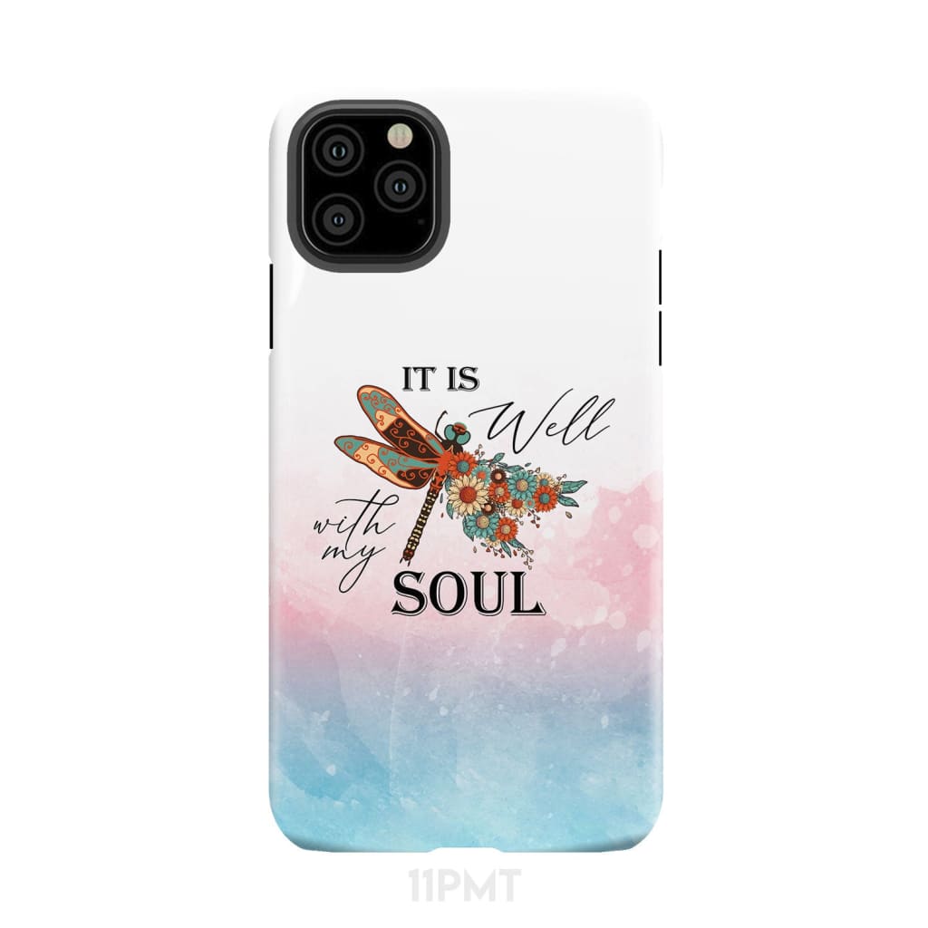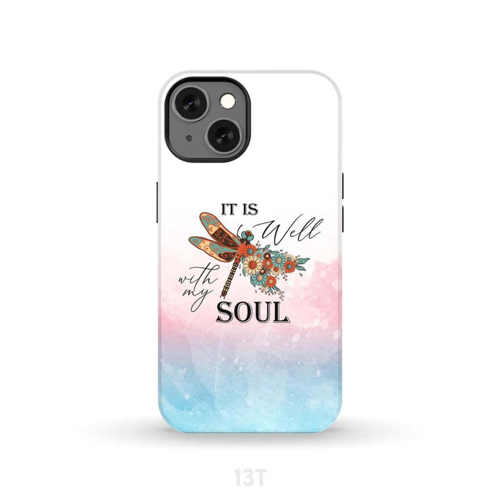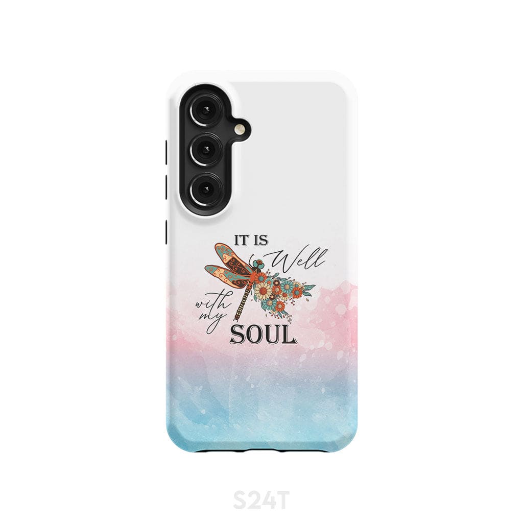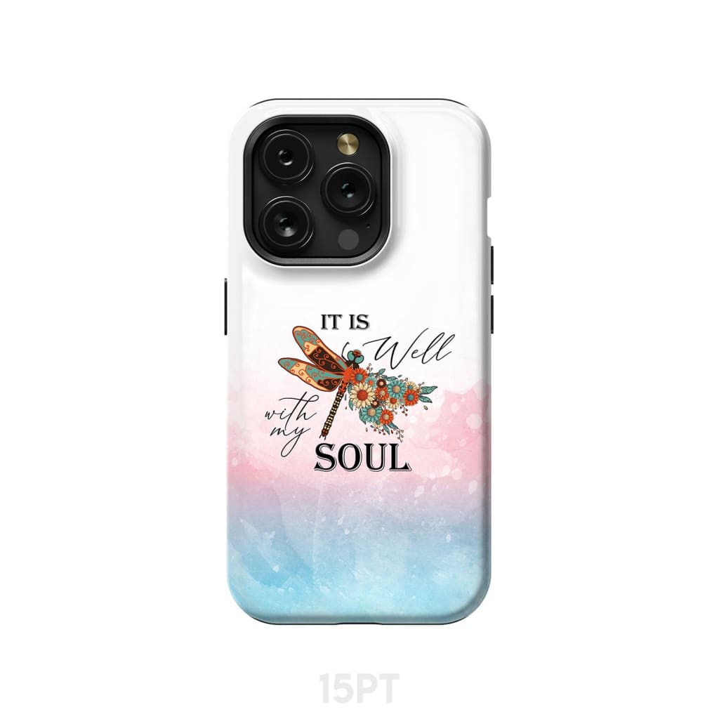 Christian Phone Case, It Is Well With My Soul, Dragonfly Flowers