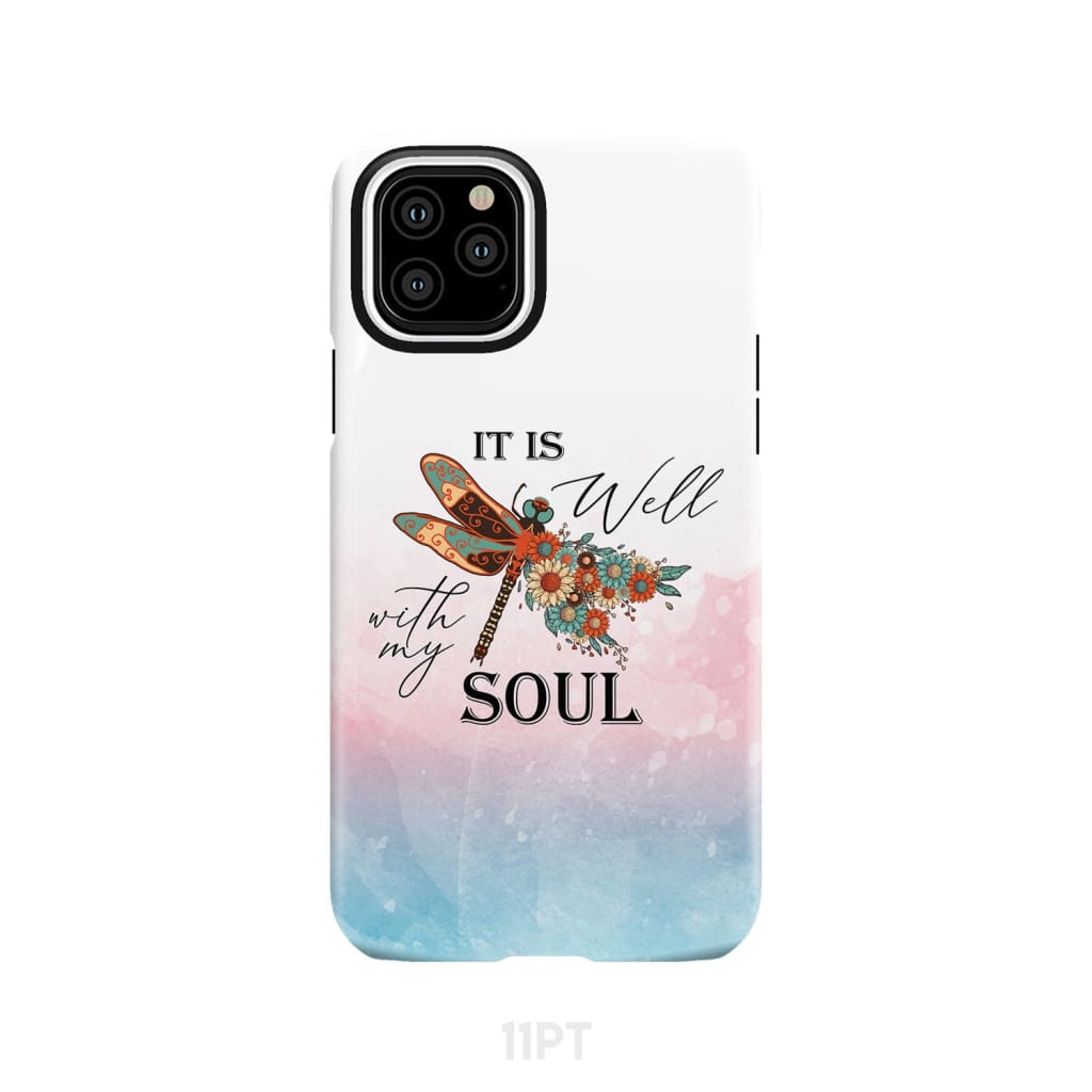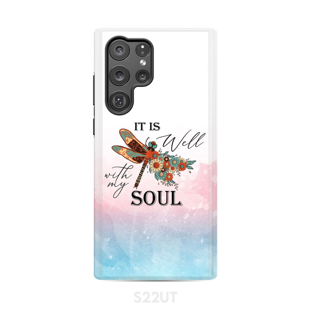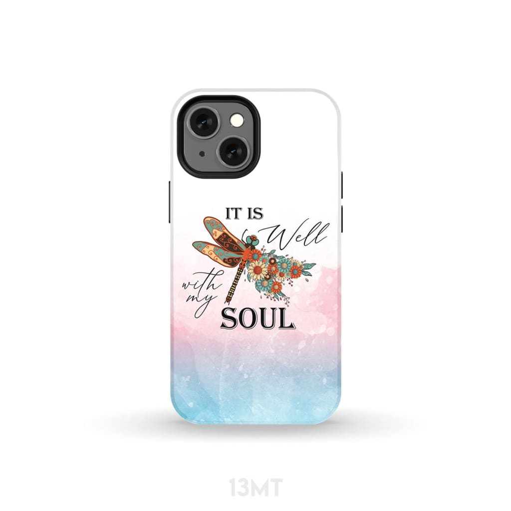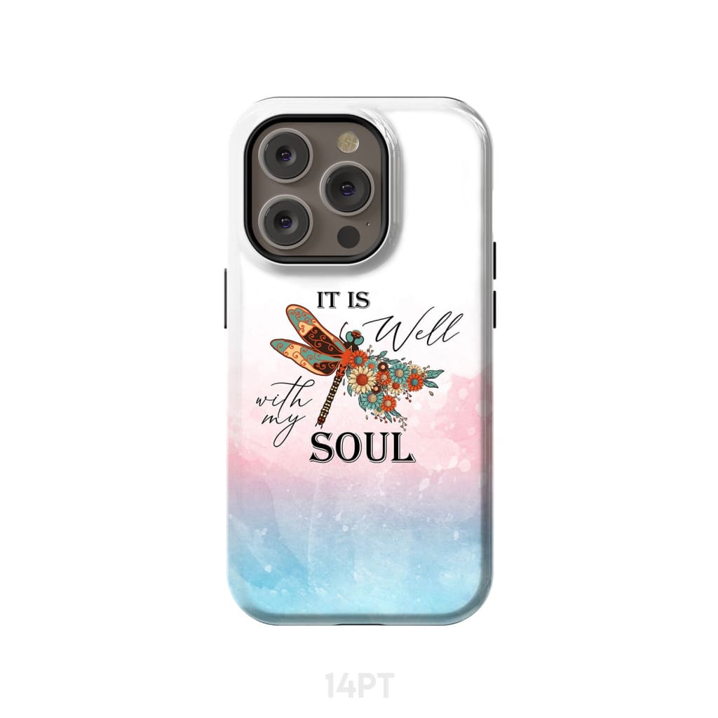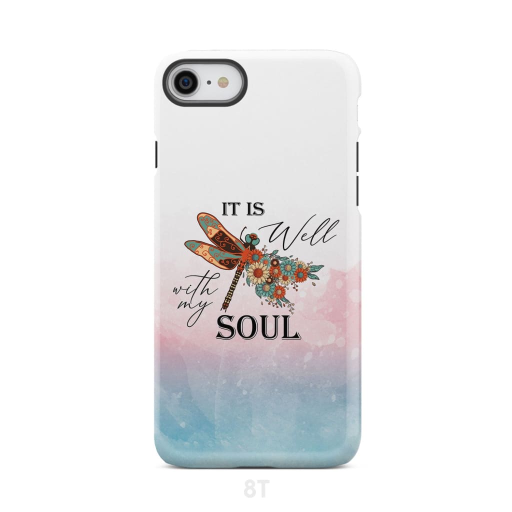 Christian Phone Case, It Is Well With My Soul, Dragonfly Flowers