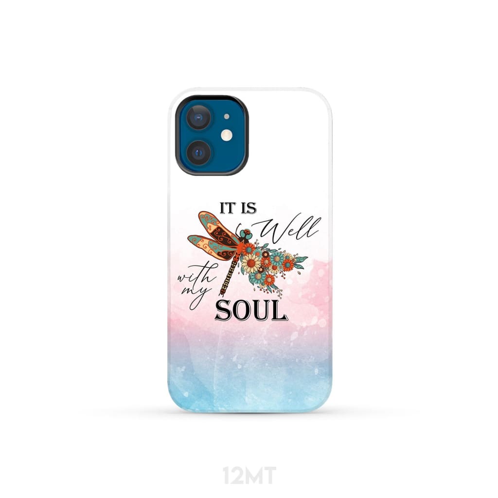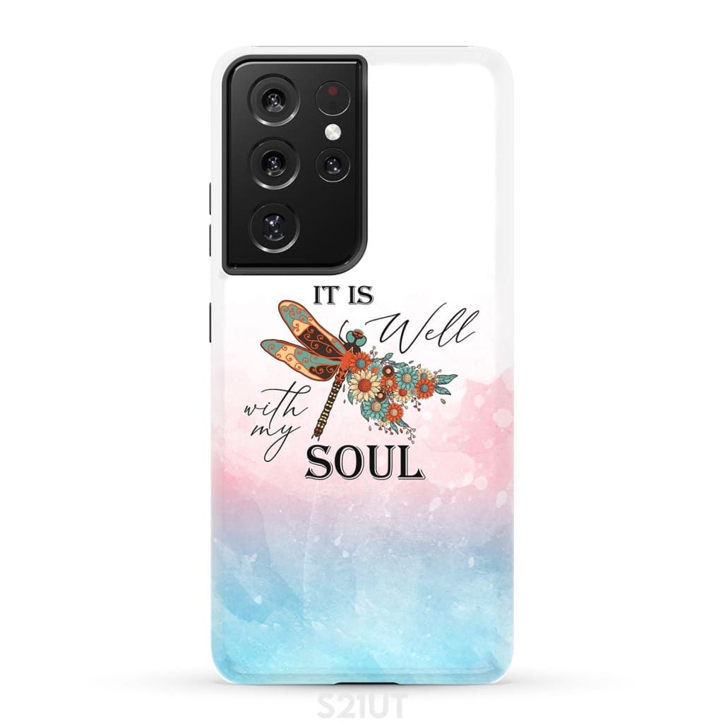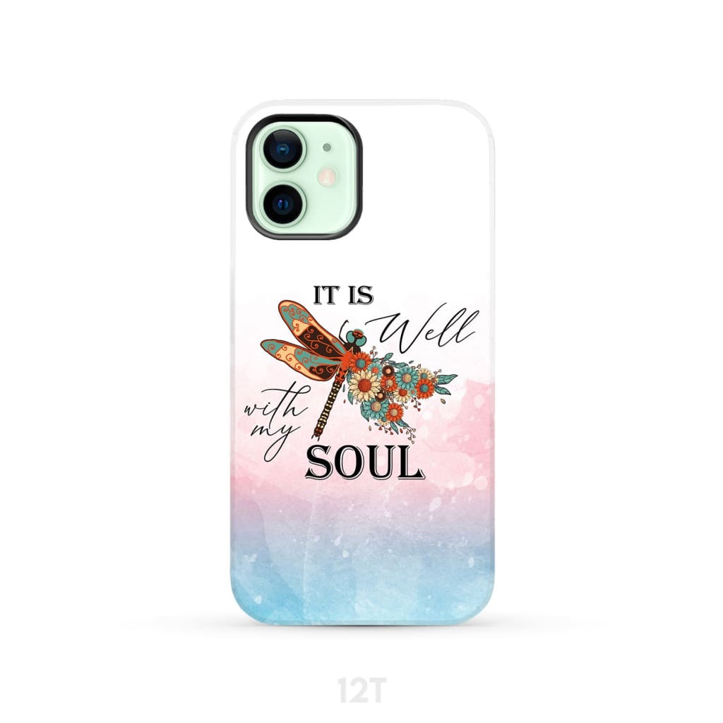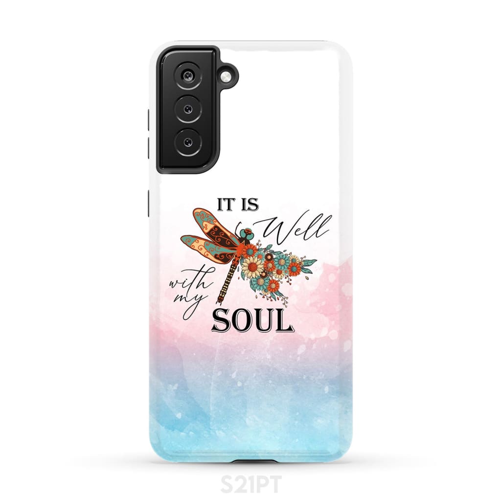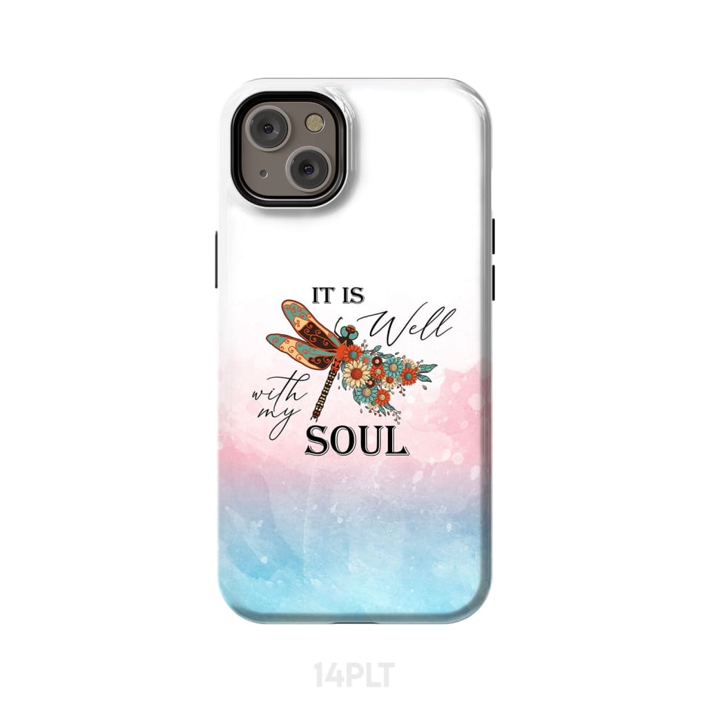 Christian Phone Case, It Is Well With My Soul, Dragonfly Flowers