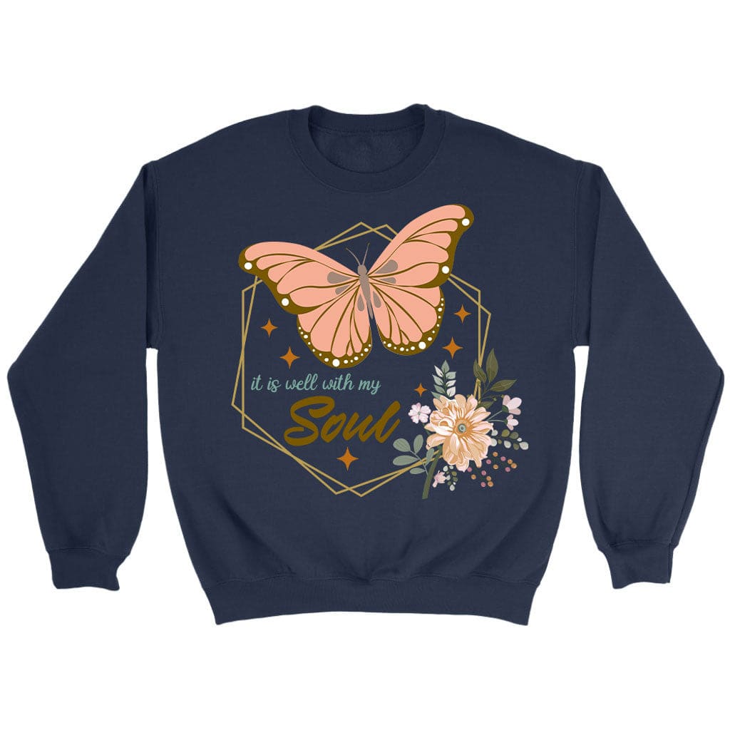 It Is Well With My Soul Flowers Butterfly Sweatshirt