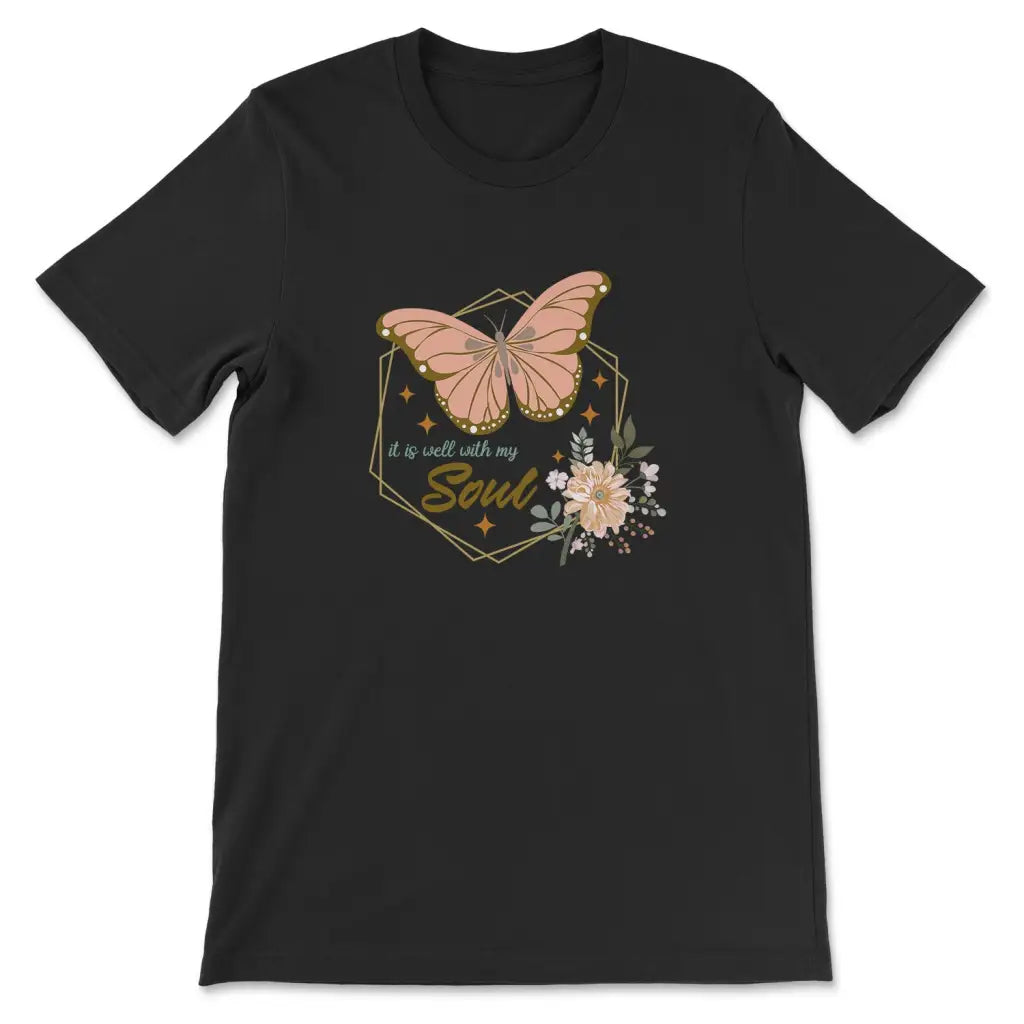 It Is Well With My Soul Flowers Butterfly T-shirt