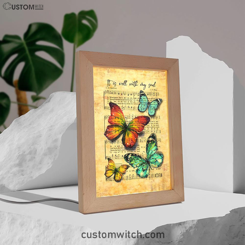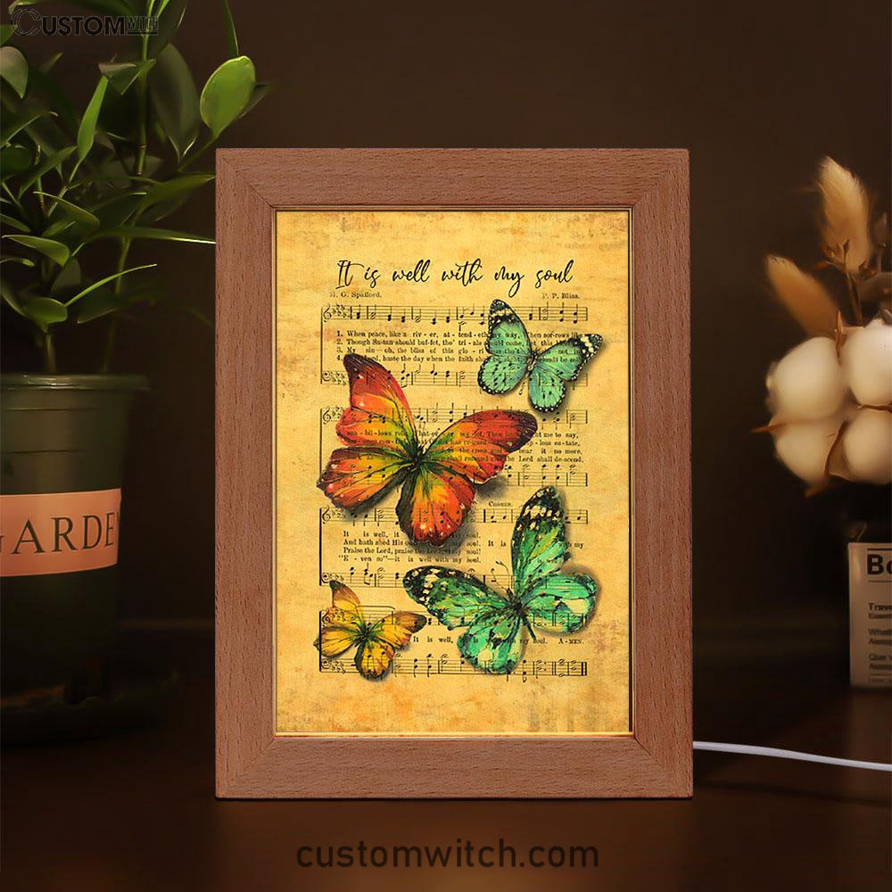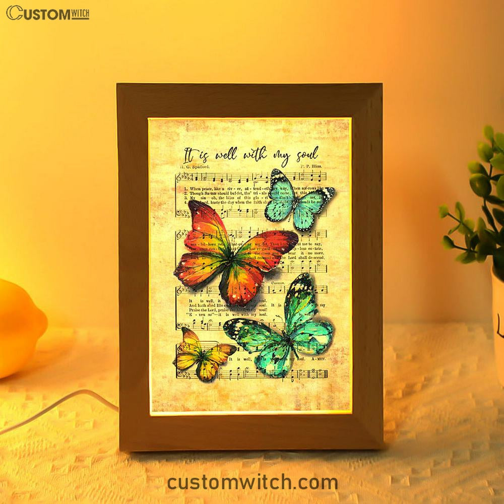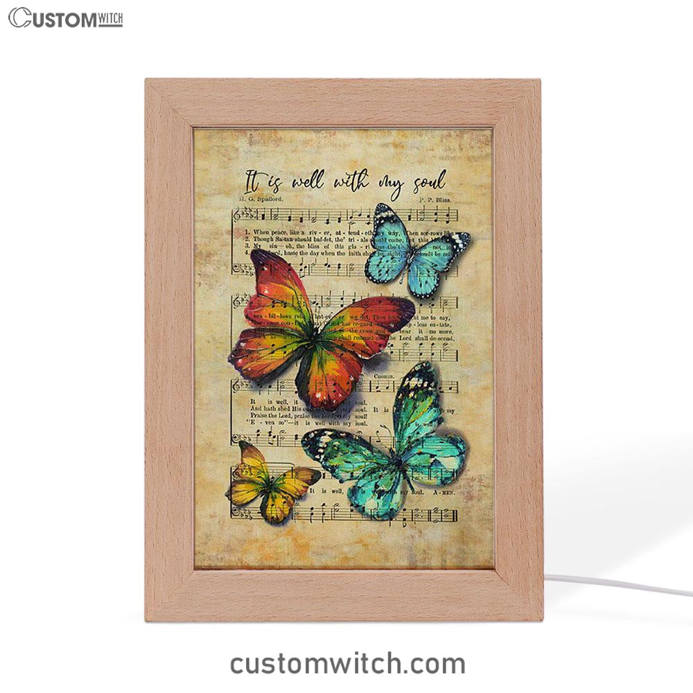 It Is Well With My Soul Frame Lamp - Brilliant Butterfly Antique Music Sheet Frame Lamp Art - Bible Verse Art - Christian Inspirational Decor