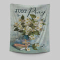 Jasmine Book Wooden Cross Just Pray Tapestry Art - Christian Art - Bible Verse Wall Art - Religious Home Decor