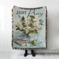Jasmine Book Wooden Cross Just Pray Woven Blanket Art - Christian Art - Bible Verse Throw Blanket - Religious Home Decor