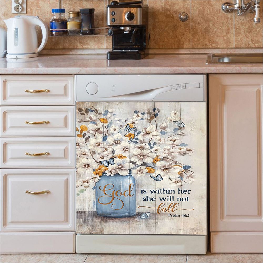 Jasmine Flower God Is Within Her Dishwasher Cover, Bible Verse Dishwasher Stickers, Christian Inspirational Kitchen Decor