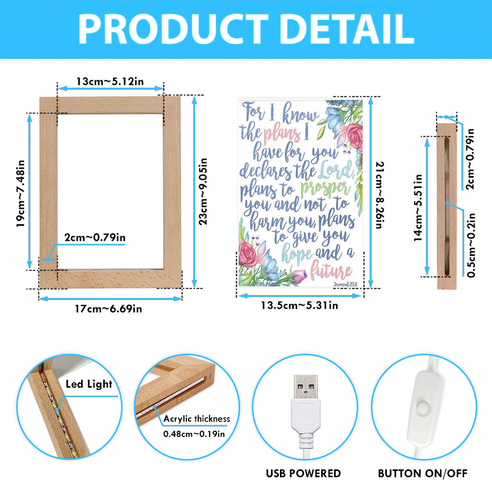 Jeremiah 29 11 Frame Lamp Art - For I Know The Plans I Have For You - Christian Night Light Decor