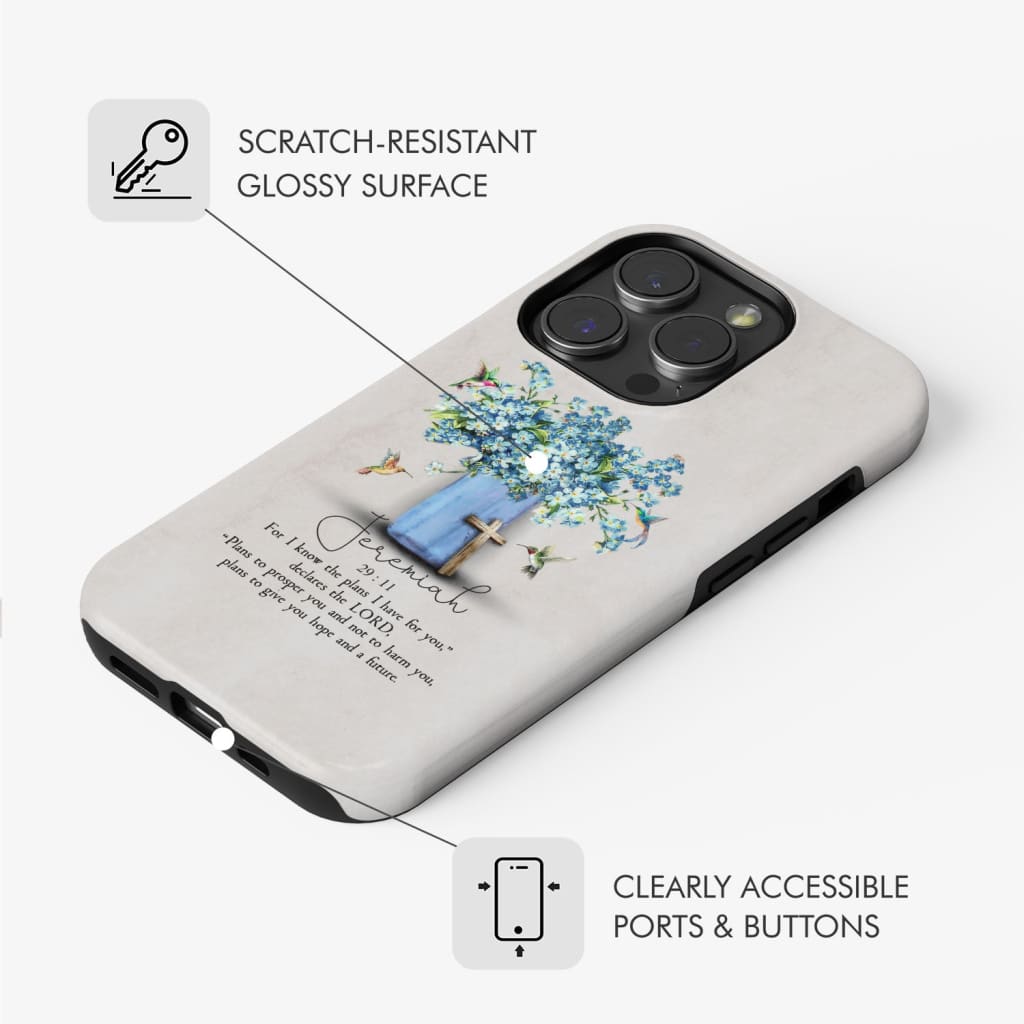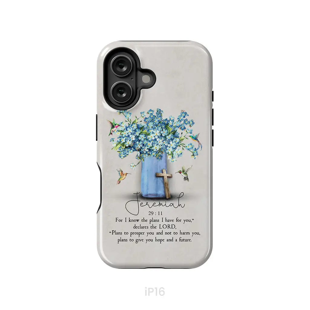 Bible Verse Phone Cases: Jeremiah 29:11 NIV, Hummingbird Flowers, Phone Case