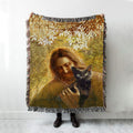 Jesus And Black Cat Woven Throw Blanket - Bible Verse Woven Blanket Art - Inspirational Art - Christian Home Decor