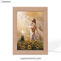 Jesus And Cat Sunflower Garden Frame Lamp Art - Christian Art Decor - Gift For Cat Lover