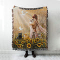 Jesus And Cat Sunflower Garden Woven Blanket Art - Christian Throw Blanket Decor - Gift For Cat Lover
