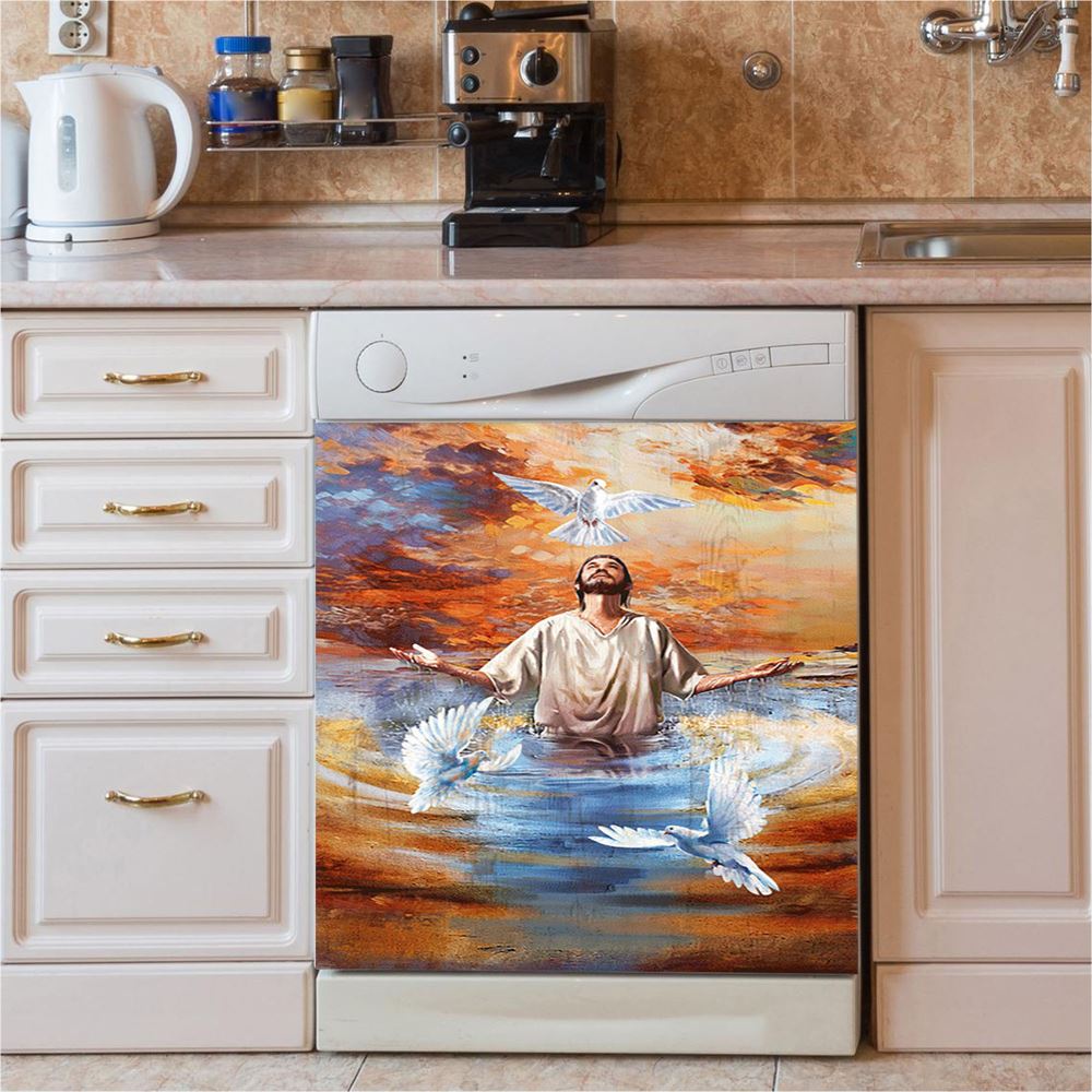 Jesus And Doves Baptism Dishwasher Cover, Bible Verse Dishwasher Stickers, Inspirational Kitchen Decor