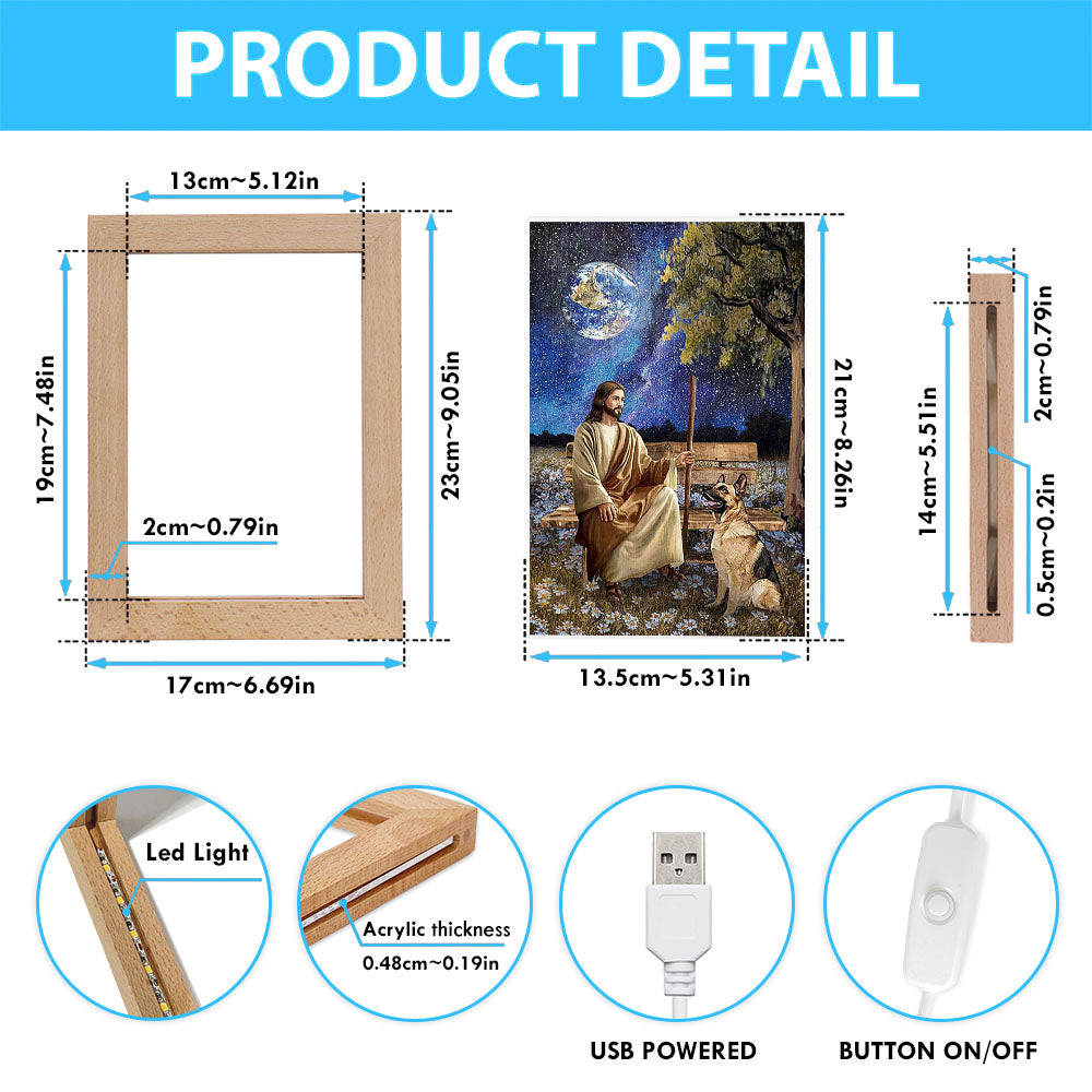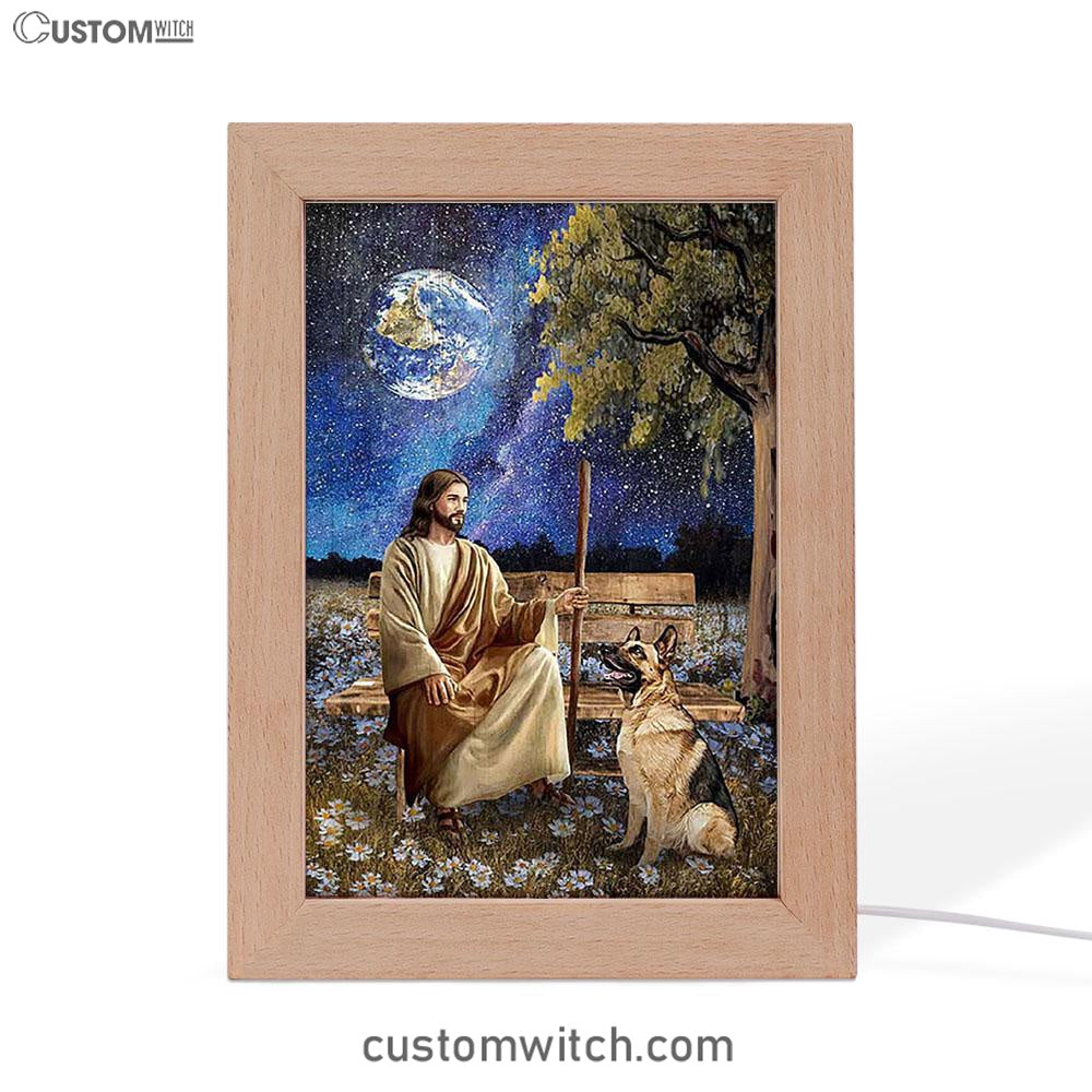 Jesus And German Shepherd Dog Daisy Field Art Frame Lamp - Jesus Portrait Frame Lamp Prints - Christian Art