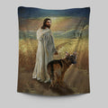 Jesus And German Shepherd Dog Walking Rice Field Tapestry Wall Decor - Christian Wall Art - Gift For Dog Lover