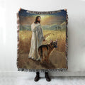Jesus And German Shepherd Dog Walking Rice Field Woven Boho Blanket - Christian Throw Blanket - Gift For Dog Lover
