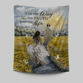 Jesus And Girl I Am The Way The Truth And The Life Tapestry Wall Art - Christian Tapestries Prints - Bible Verse Tapestry Art