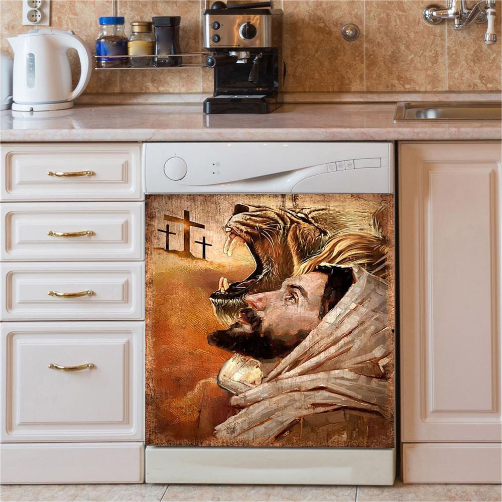 Jesus And Lion Dishwasher Cover, Jesus Dishwasher Stickers, Christian Kitchen Decor