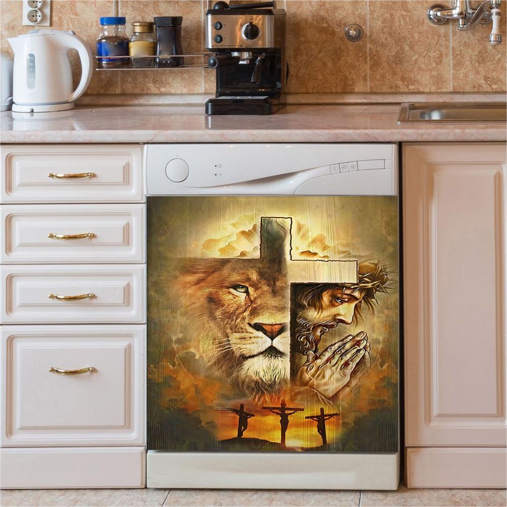 Jesus And Lion Dishwasher Cover, Lion Dishwasher Stickers, Christian Inspirational Kitchen Decor
