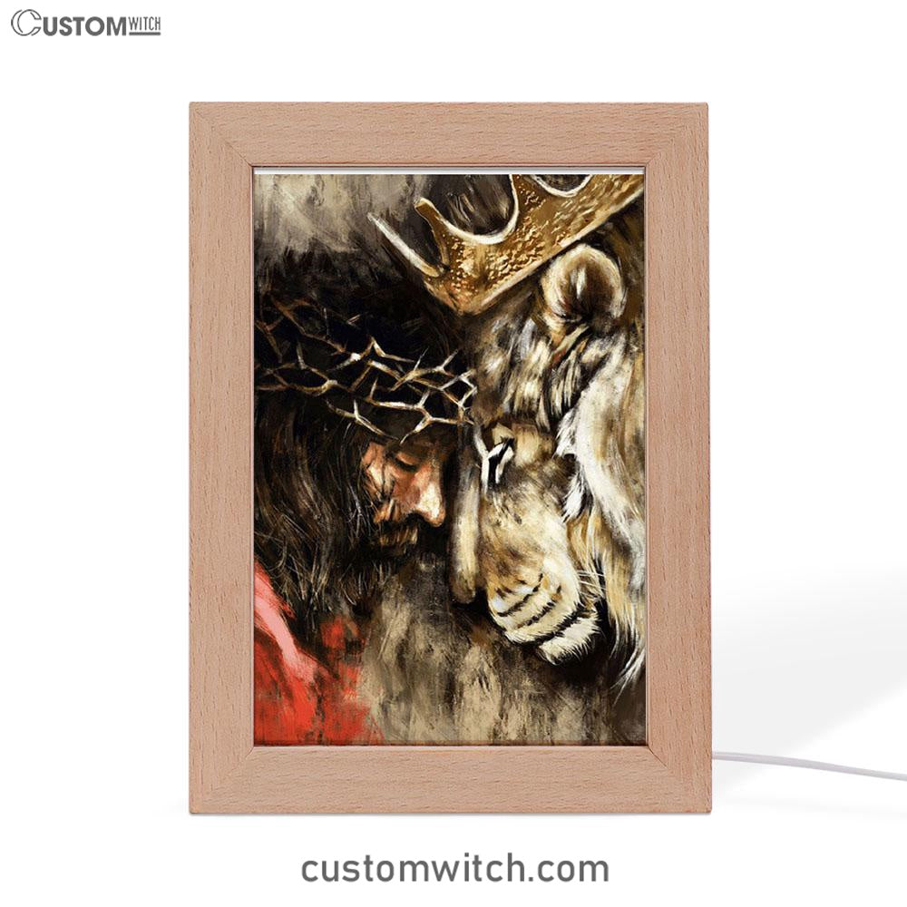 Jesus And Lion Frame Lamp Prints - Jesus Christ Frame Lamp Art - Christian Decor