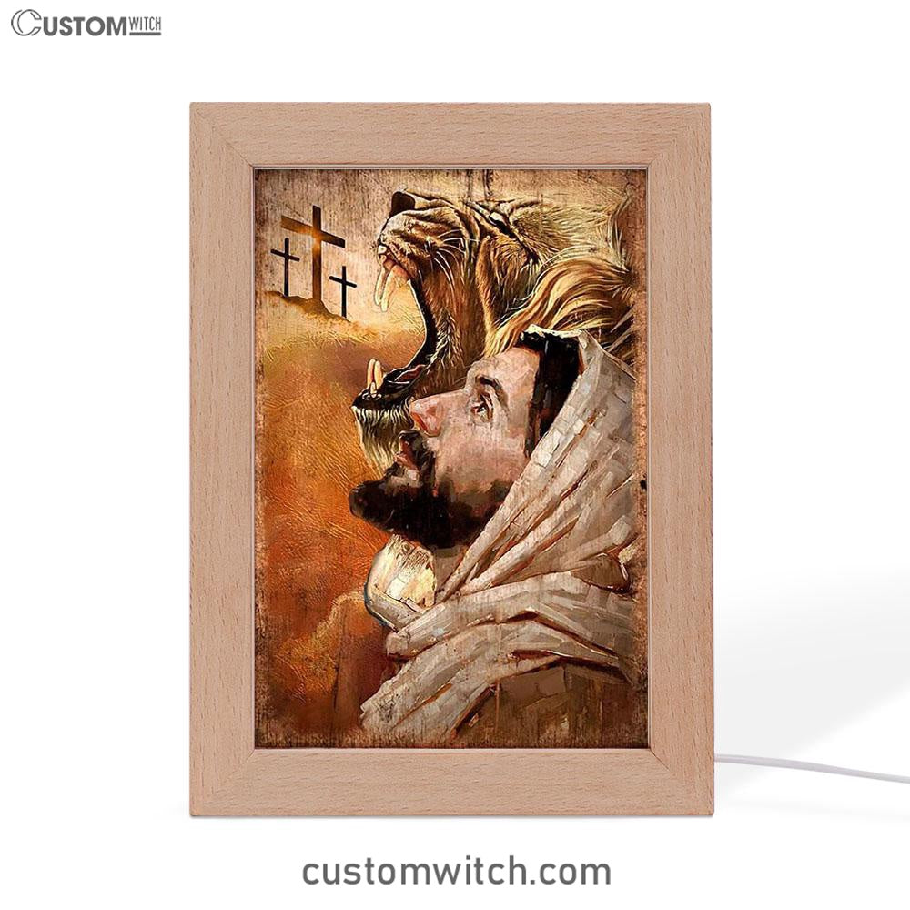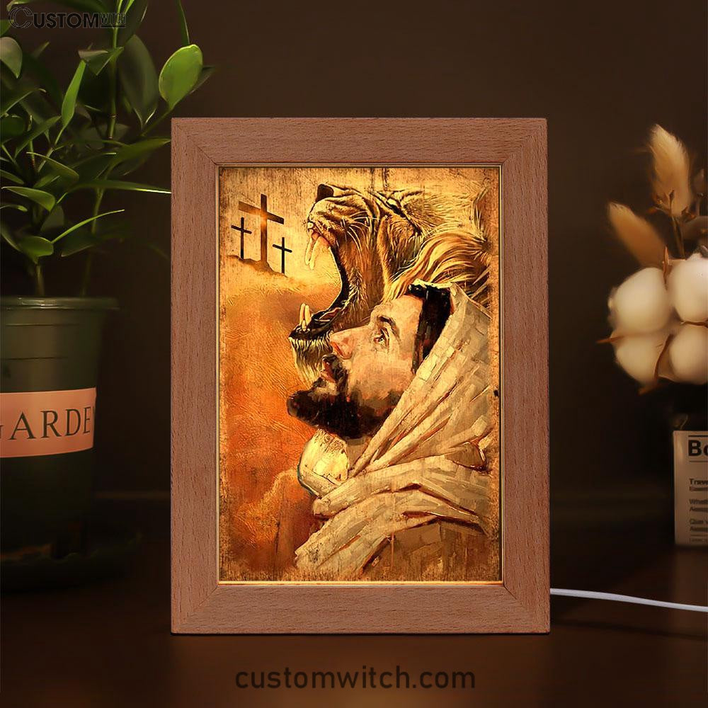 Jesus And Lion Frame Lamp Prints - Lion Frame Lamp Art - Christian Inspirational Frame Lamp