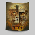 Jesus And Lion Tapestry Wall Art - Jesus Tapestry Pictures - Christian Tapestries Wall Art