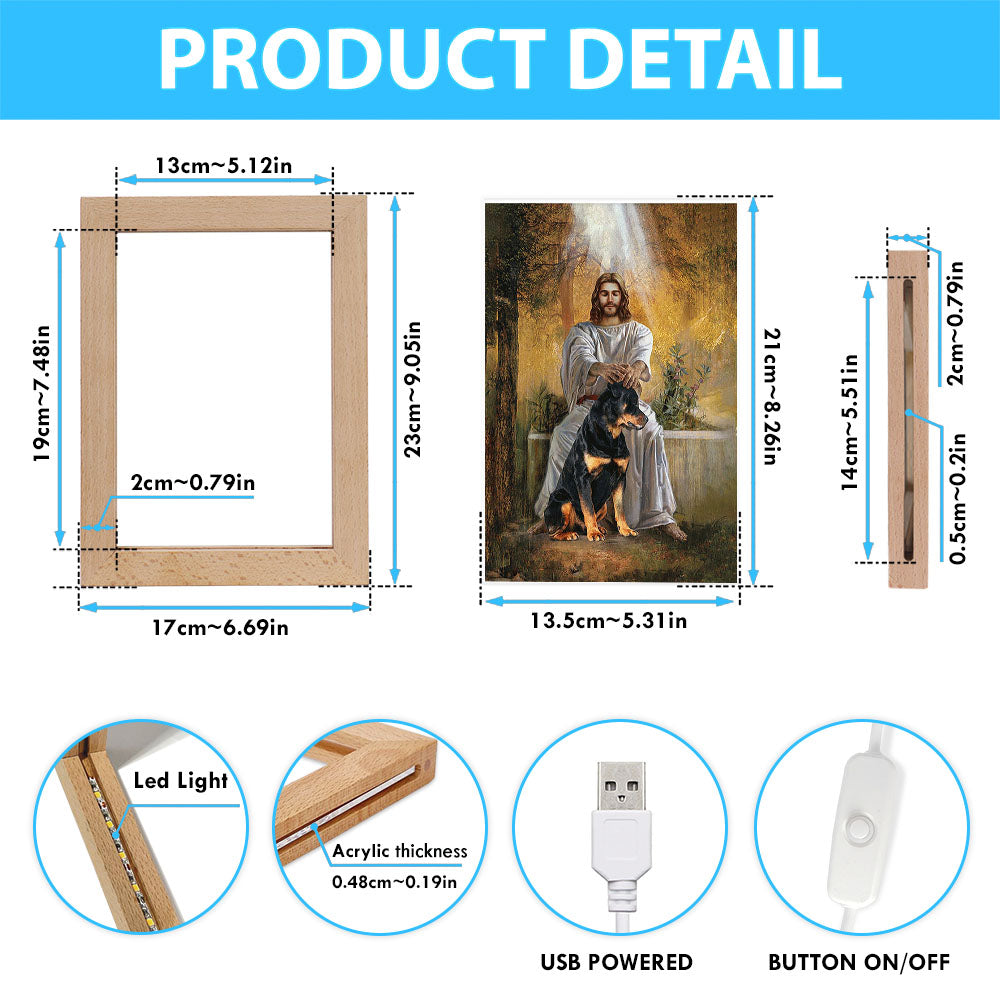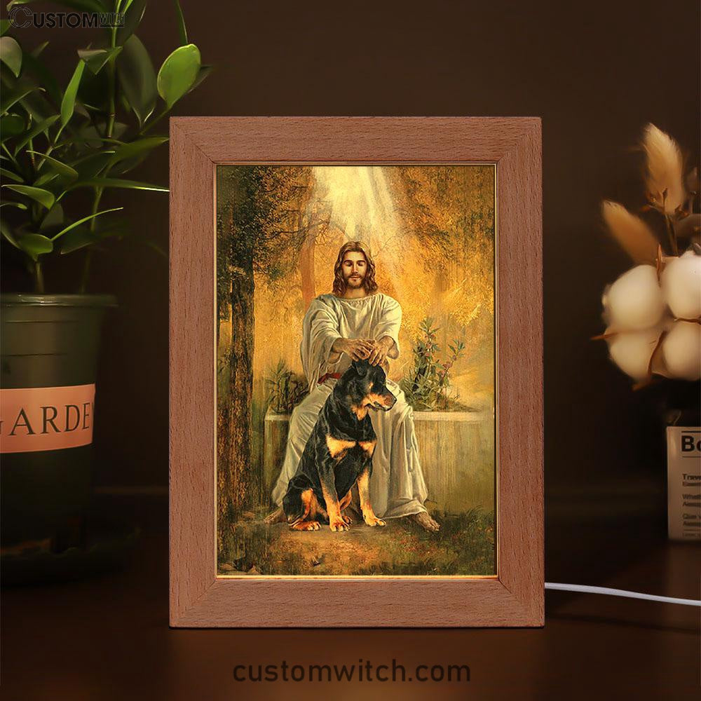 Jesus And Rottweiler Dog Art Frame Lamp - Jesus Portrait Frame Lamp Prints - Christian Art