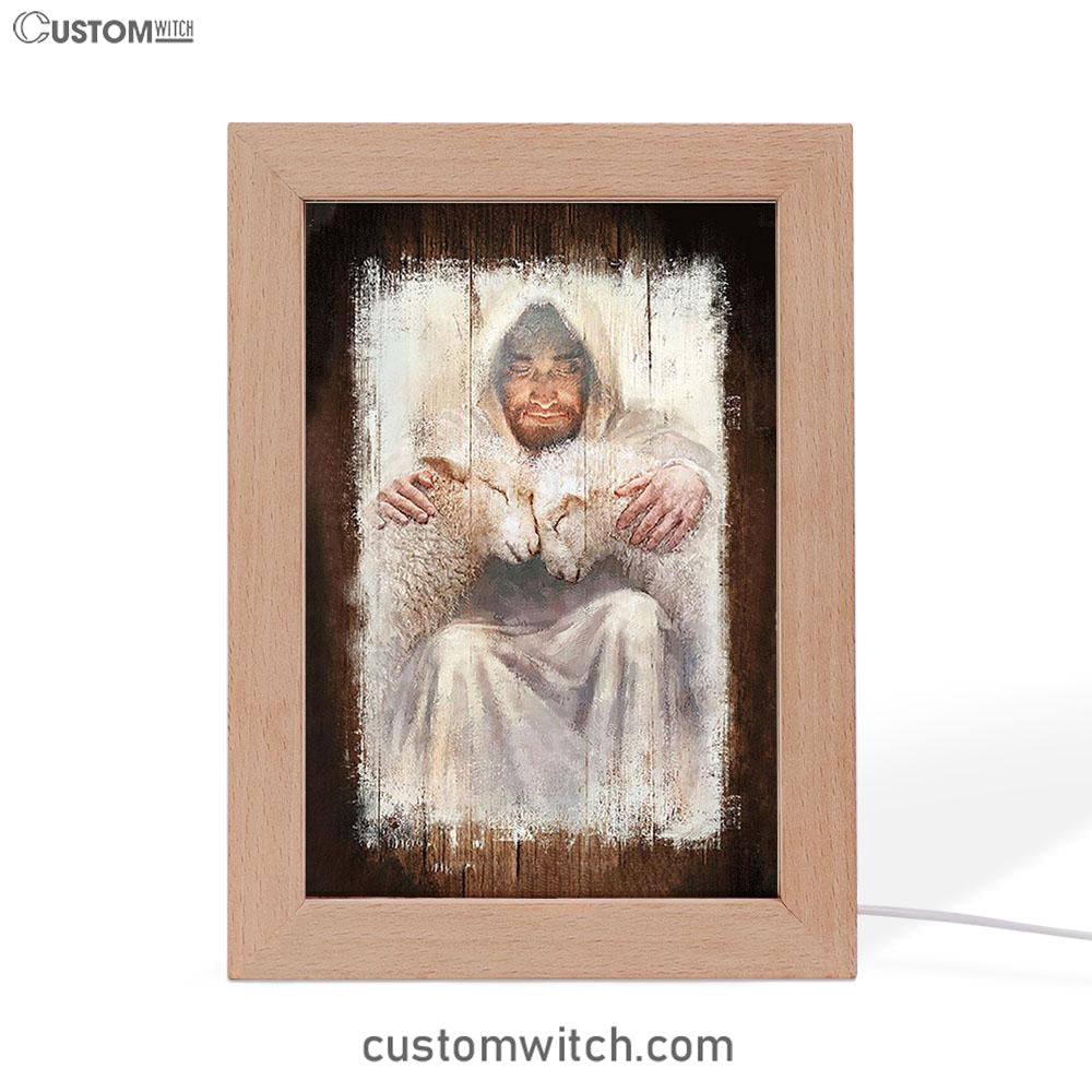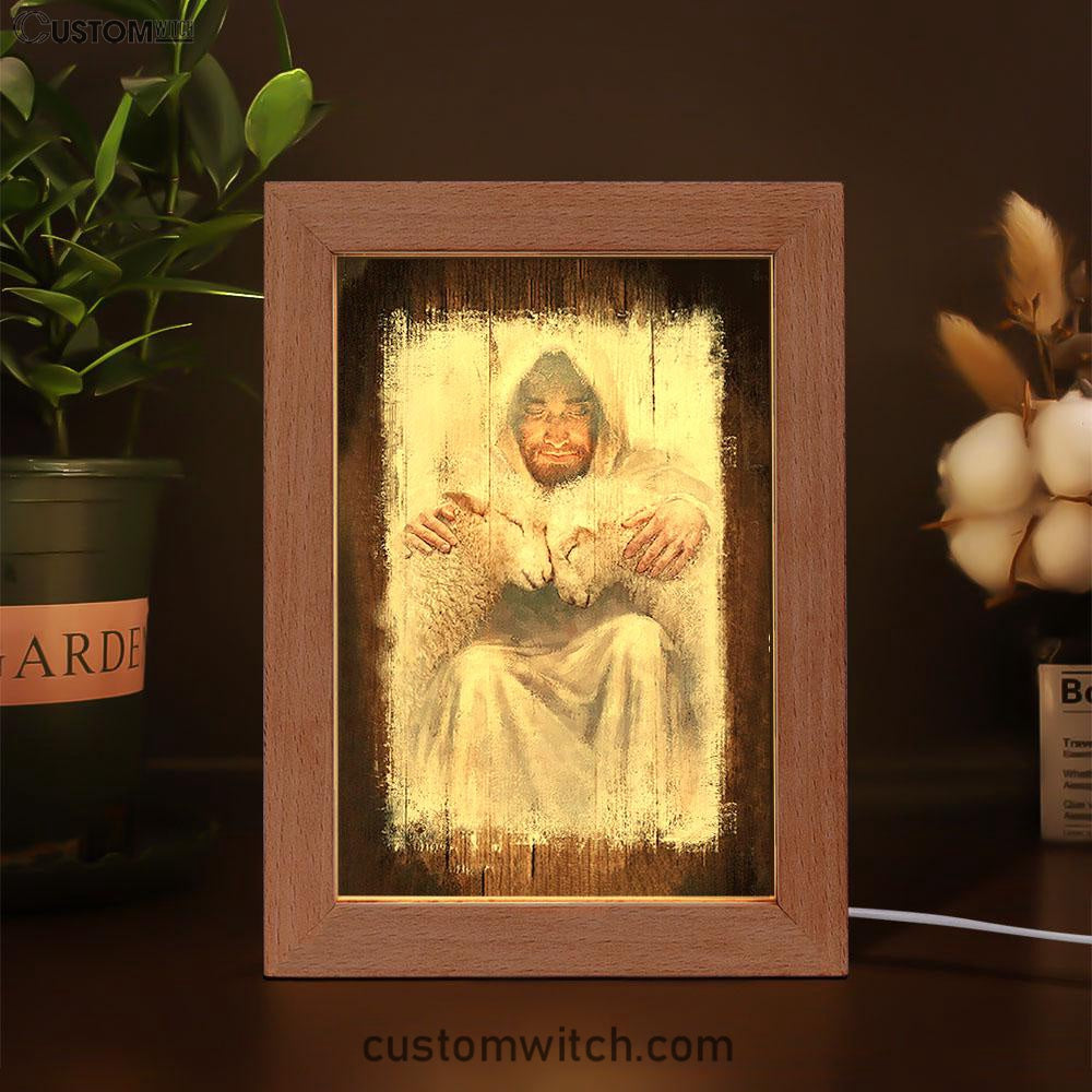 Jesus And The Lambs Art Frame Lamp - Jesus Portrait Frame Lamp Prints - Christian Art