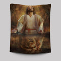 Jesus Artwork, Lion Of Judah, Yellow Halo Tapestry