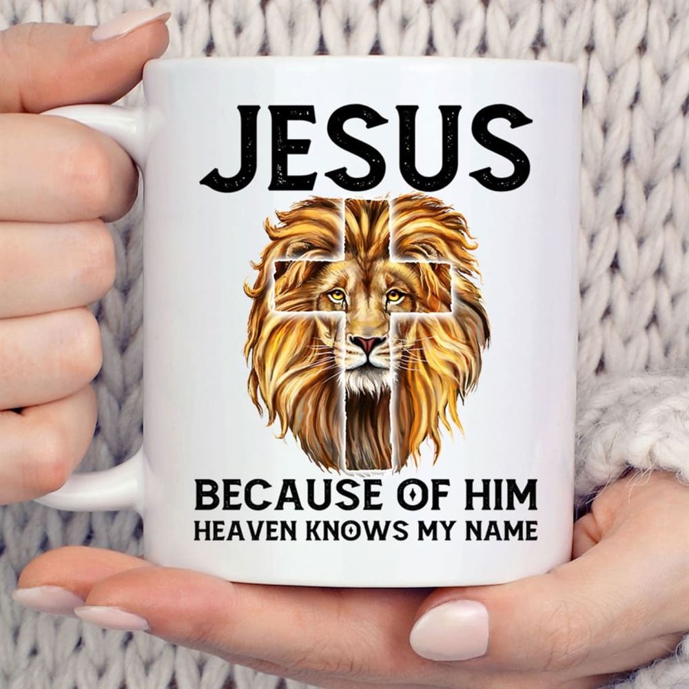 Jesus Because Of Him Heaven Knows My Name, Jesus Lion, Christian Coffee Mug, Christian Mug, Bible Mug, Faith Gift, Encouragement Gift