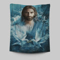 Jesus Bird Couple Blue Water Tapestry Prints - Jesus Christ Tapestry Art - Christian Wall Decor