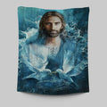 Jesus Bird Couple Blue Water Wall Art Tapestry - Jesus Portrait Tapestry Prints - Christian Wall Art