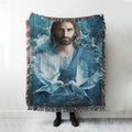 Jesus Bird Couple Blue Water Woven Blanket Prints - Jesus Christ Woven Blanket Art - Christian Boho Blanket