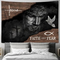 Jesus Black Faith Over Fear Tapestry Art - Christian Wall Art Decor - Bible Verse Tapestry