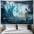 Jesus calms the storm Tapestry - When you pass through the water Tapestry Wall Art - Bible Verse Tapestry - Religious Tapestry Wall Hanging