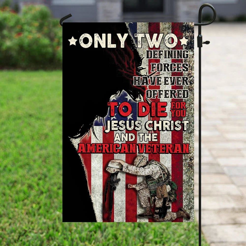 Jesus Christ And The American Veteran House Flags, Christian Flag, Scripture Flag, Garden Banner
