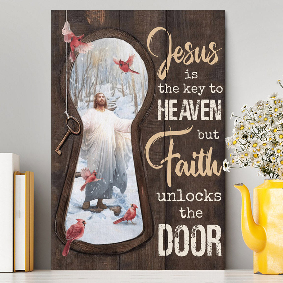 Jesus Christ Northern Cardinal Canvas - Jesus Is The Key To Heaven Canvas Prints - Jesus Christ Canvas Art - Christian Wall Decor