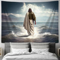 Jesus Christ Walking Water Sea Tapestry Pictures - Faith Art - Christian Tapestry Wall Art Decor