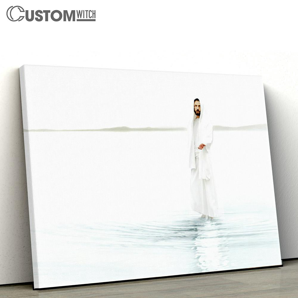 Jesus Christ Walks On Water - White Jesus - Come And See Blue Canvas Wall Art - Christian Wall Decor - Religious Art