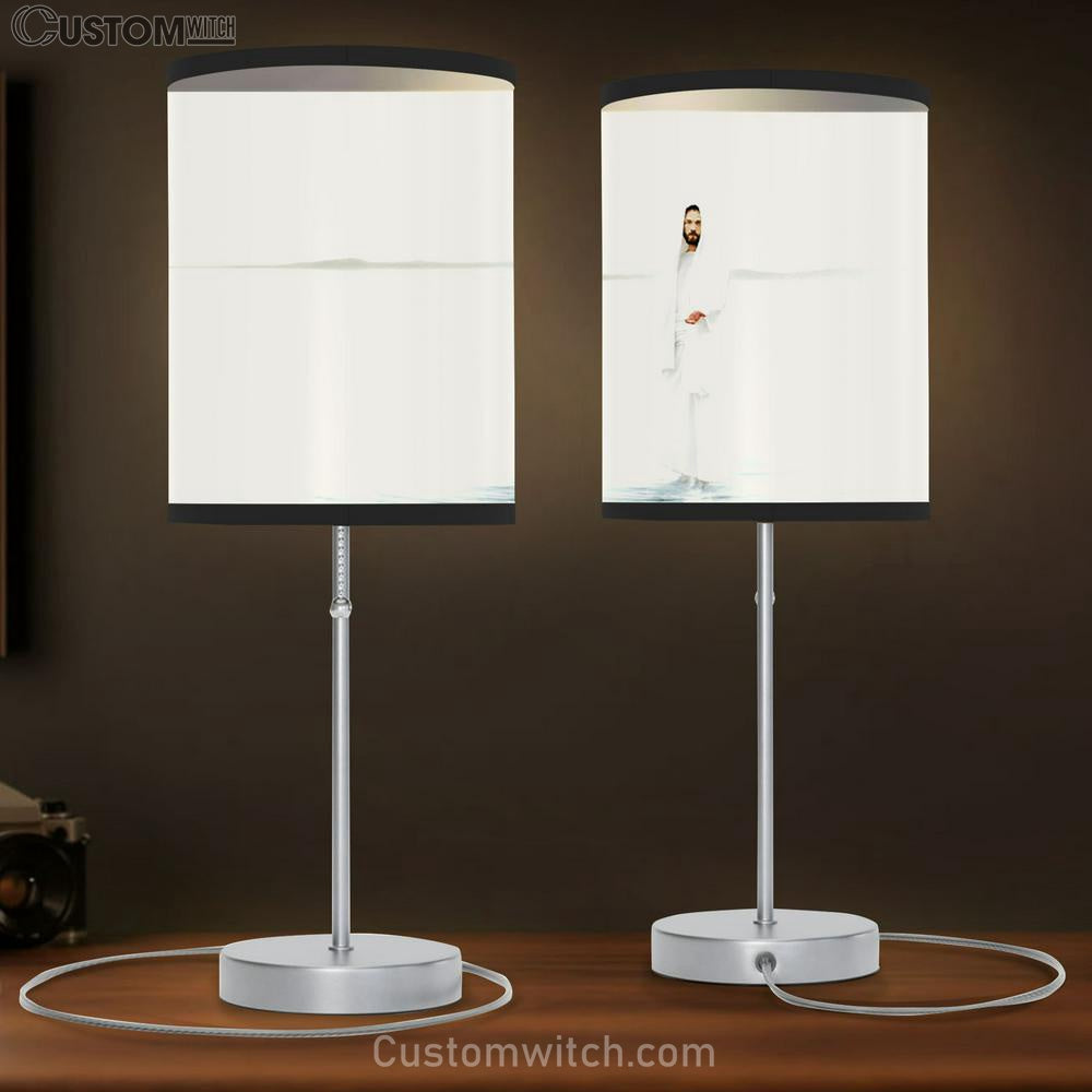 Jesus Christ Walks On Water - White Jesus - Come And See Blue Table Lamp Gift - Christian Bedroom Decor - Religious Art