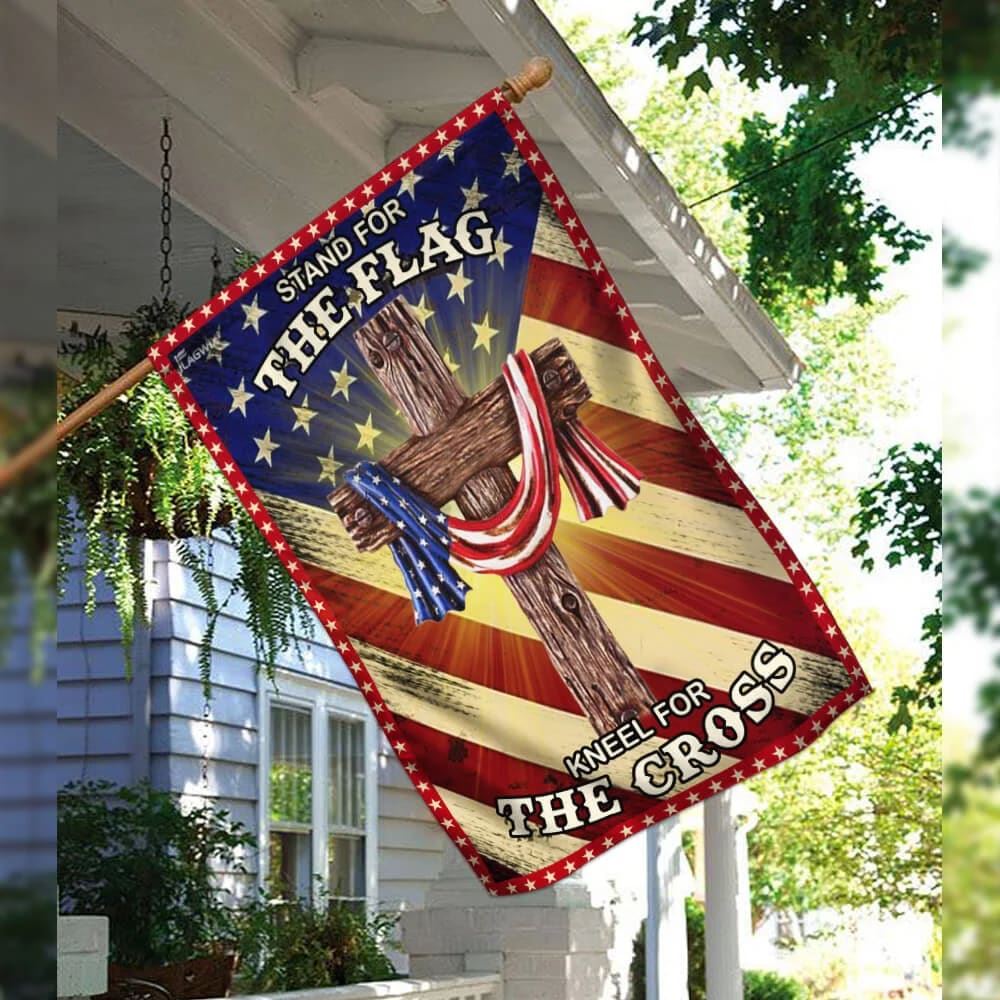 Jesus Christian Stand For The House Flags Kneel For The Cross American US House Flags, Christian Flag, Scripture Flag, Garden Banner