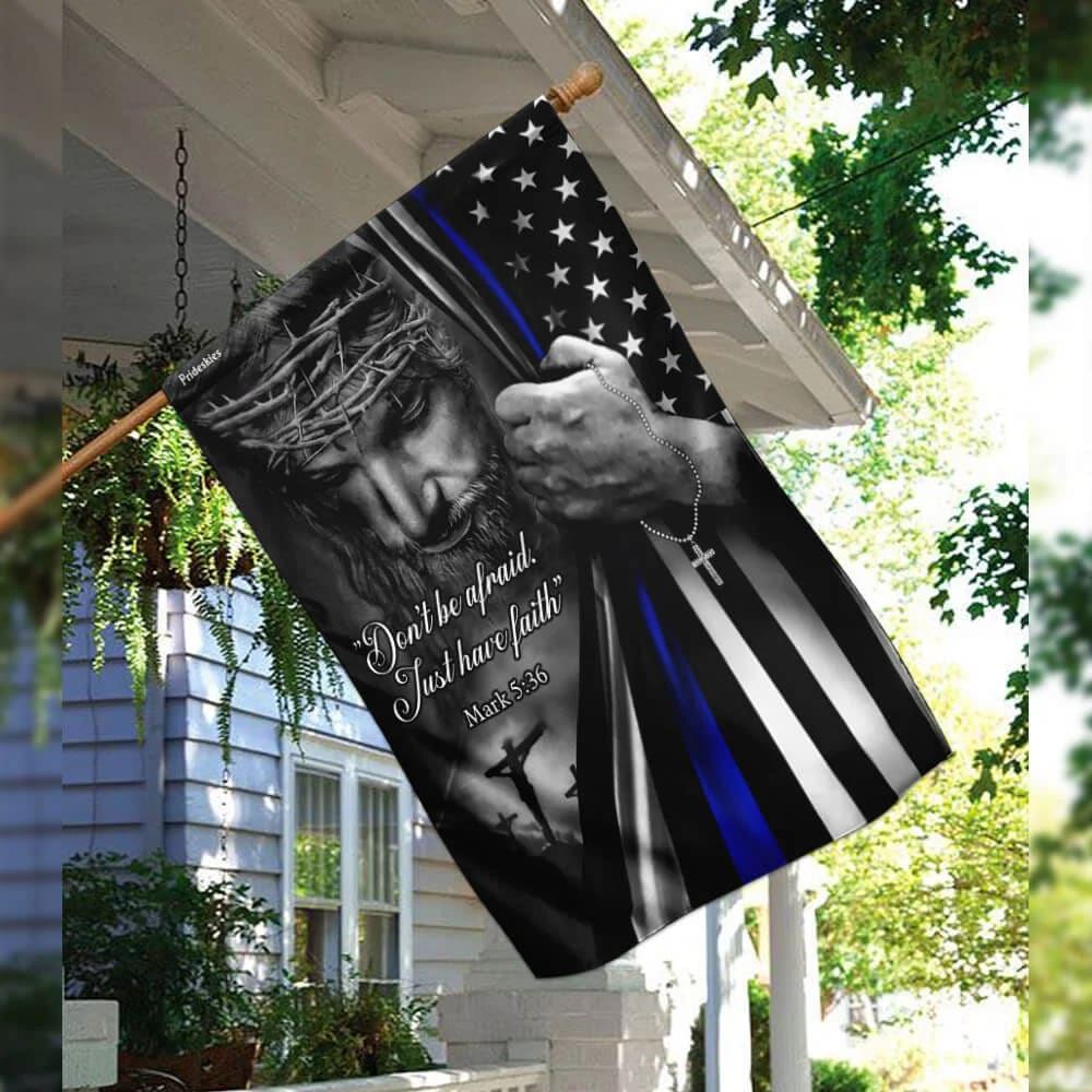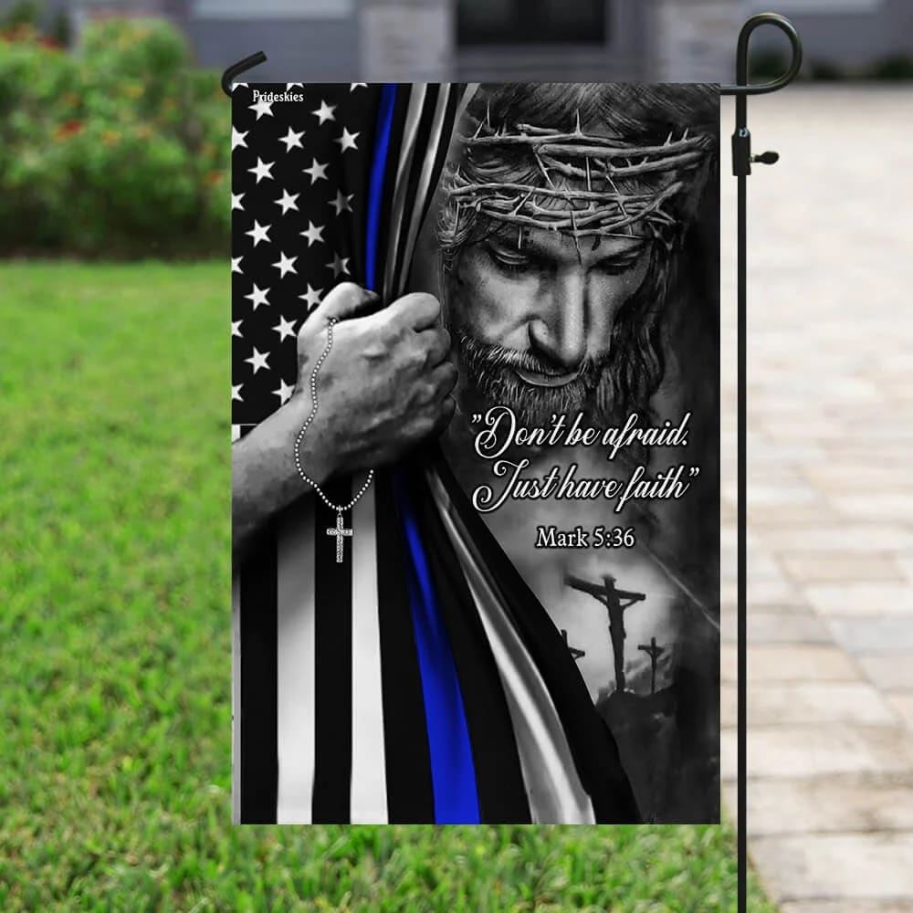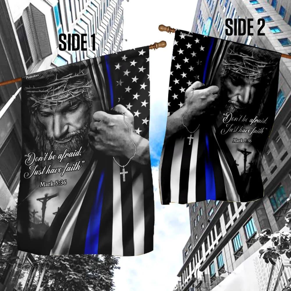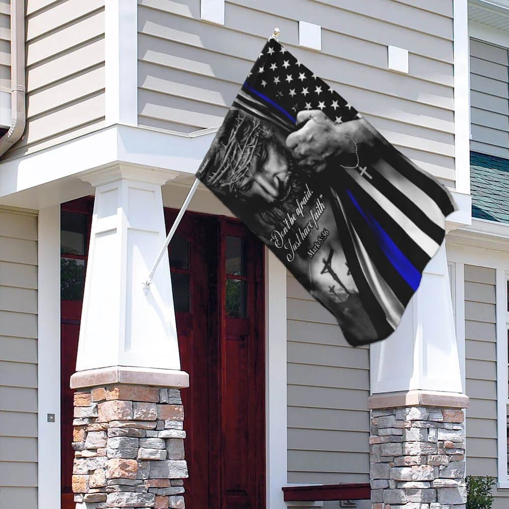 Jesus Christian Thin Blue Line House Flags, Christian Flag, Scripture Flag, Garden Banner