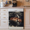 Jesus Crown Of Thorn And Lion Dishwasher Cover, Christian Dishwasher Stickers, Religious Kitchen Decor