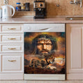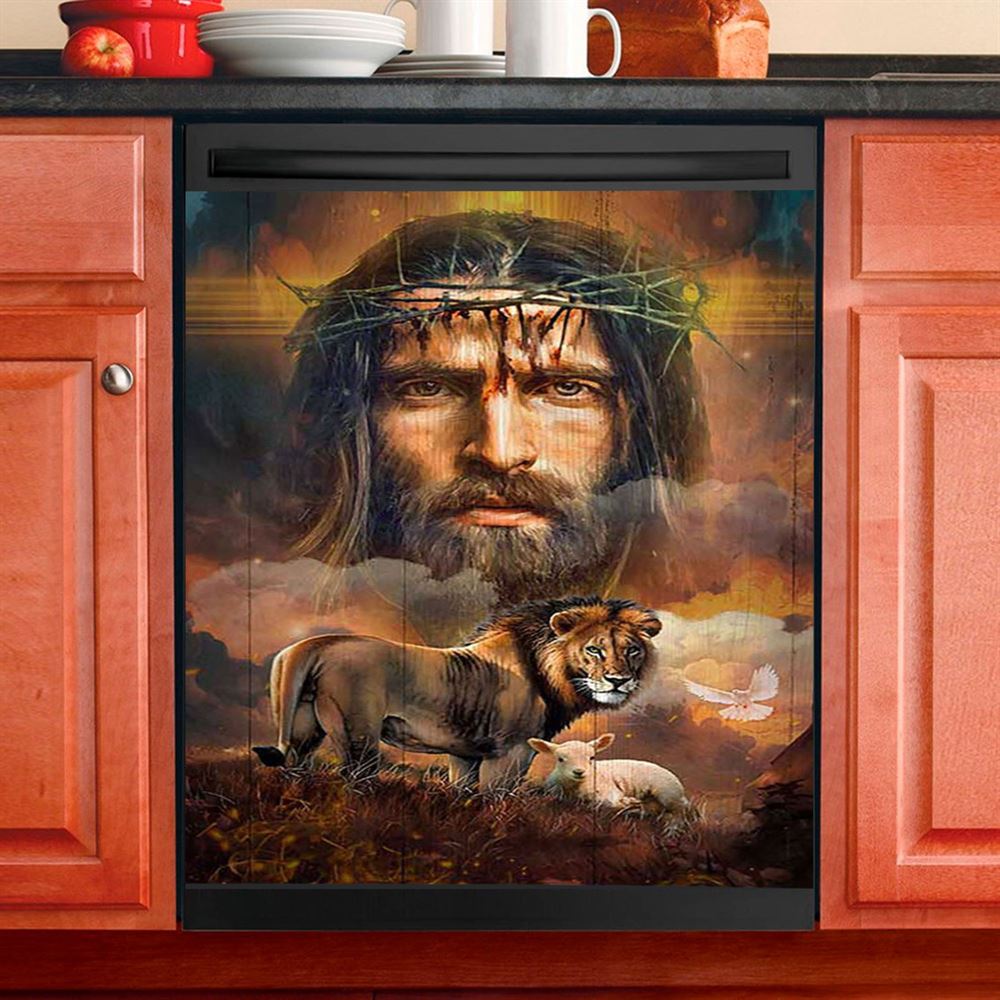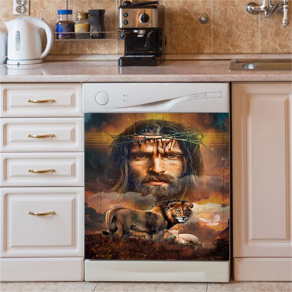 Jesus Crown Of Thorns Lion Lamb Holy Spirit Dove Dishwasher Cover, Jesus Portrait Dishwasher Stickers, Christian Kitchen Decor