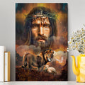 Jesus Crown Of Thorns Lion Lamb Holy Spirit Dove Wall Art Canvas - Jesus Portrait Canvas Prints - Christian Wall Art