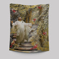 Jesus Drawing Cardinals Autumn Forest Tapestry