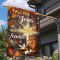 Jesus Flag Fall For Jesus He Never Leaves God Lamp Lion, Outdoor Christian House Flag, Christian Flag, Scripture Flag, Garden Banner