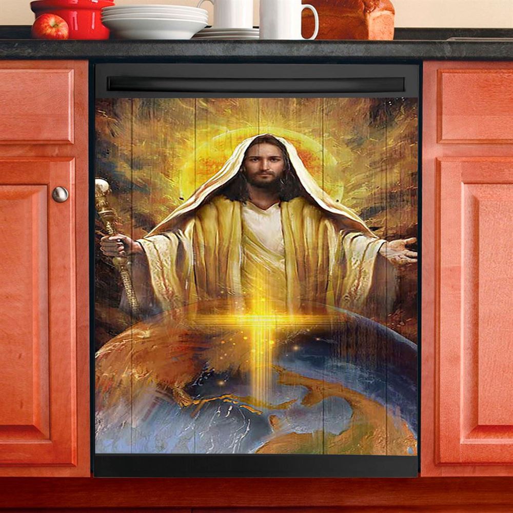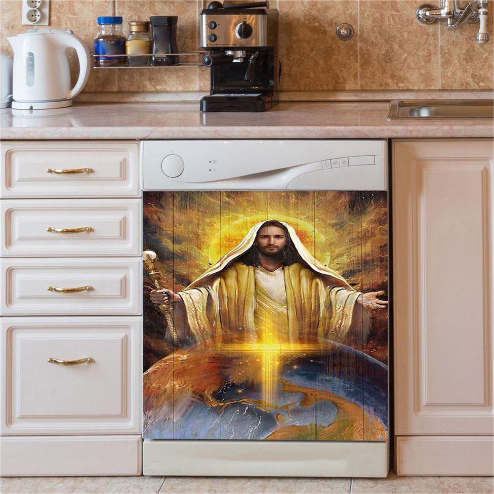 Jesus Got The Whole World In His Hands Dishwasher Cover, Jesus Portrait Dishwasher Stickers, Christian Kitchen Decor