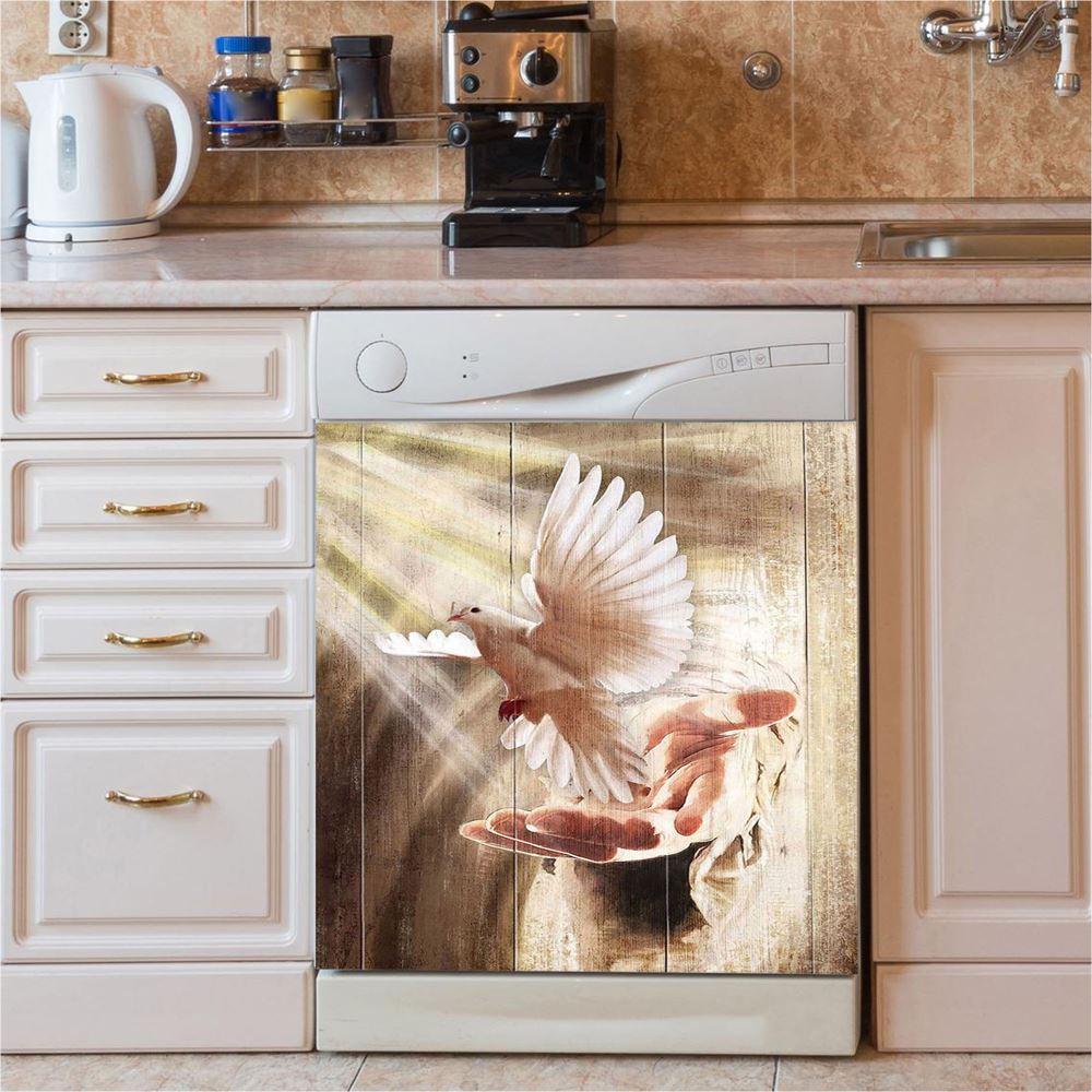 Jesus Hand A Dove On His Hand Dishwasher Cover, Christian Dishwasher Stickers, Bible Verse Kitchen Decor