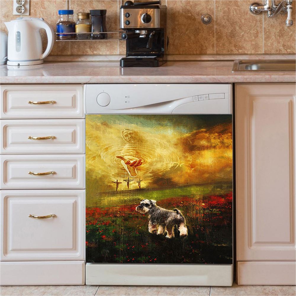 Jesus Hand Schnauzer Flower Field Dishwasher Cover, Christian Dishwasher Stickers, Religious Kitchen Decor