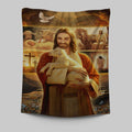 Jesus Holding A Lamb Tapestry Prints - Jesus Christ Tapestry Art - Christian Wall Decor